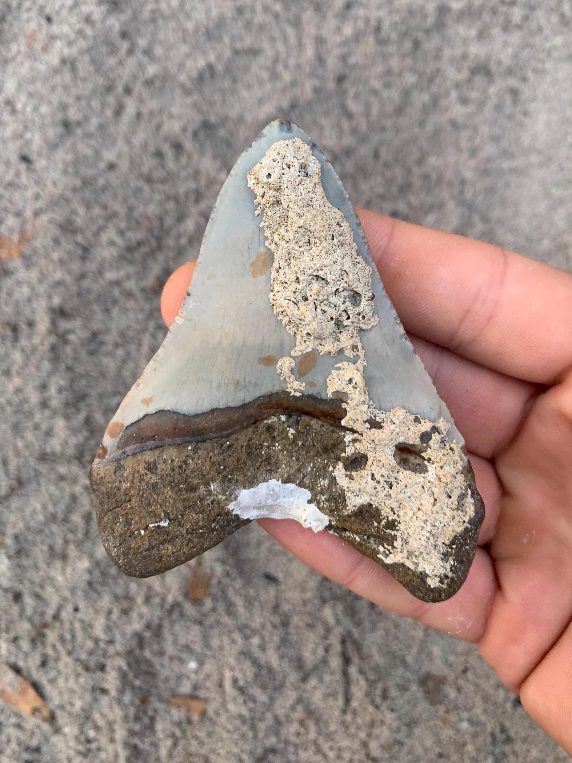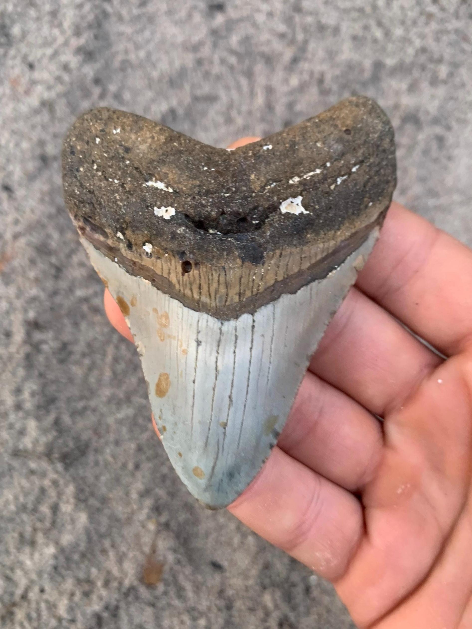 All of the shop's shark teeth are found by me diving in around 100 feet of water off of the North Carolina coast. The teeth are from the Miocene period and are between 18 - 2.5 million years old. All teeth are 100% original with no restoration or repair.