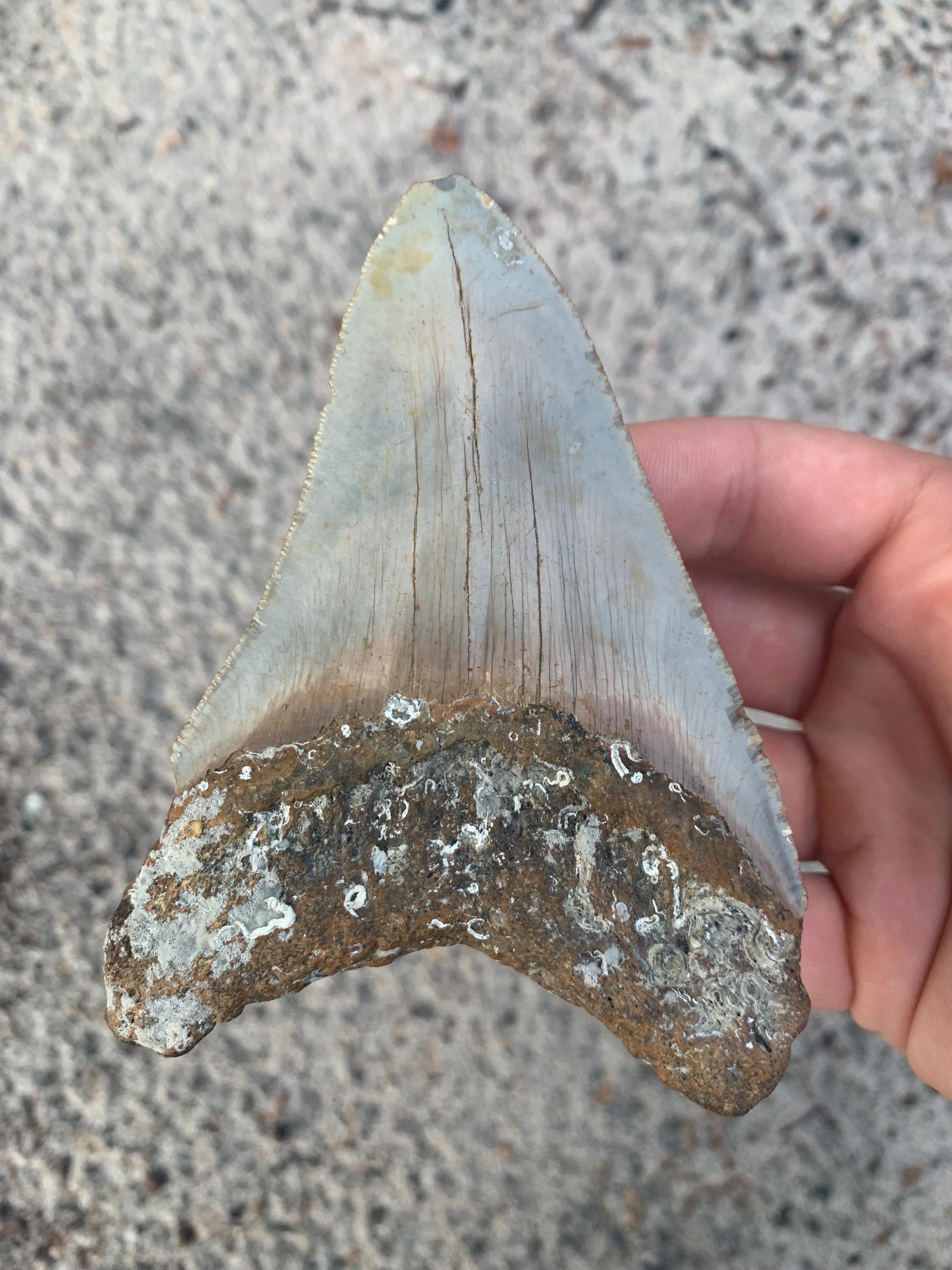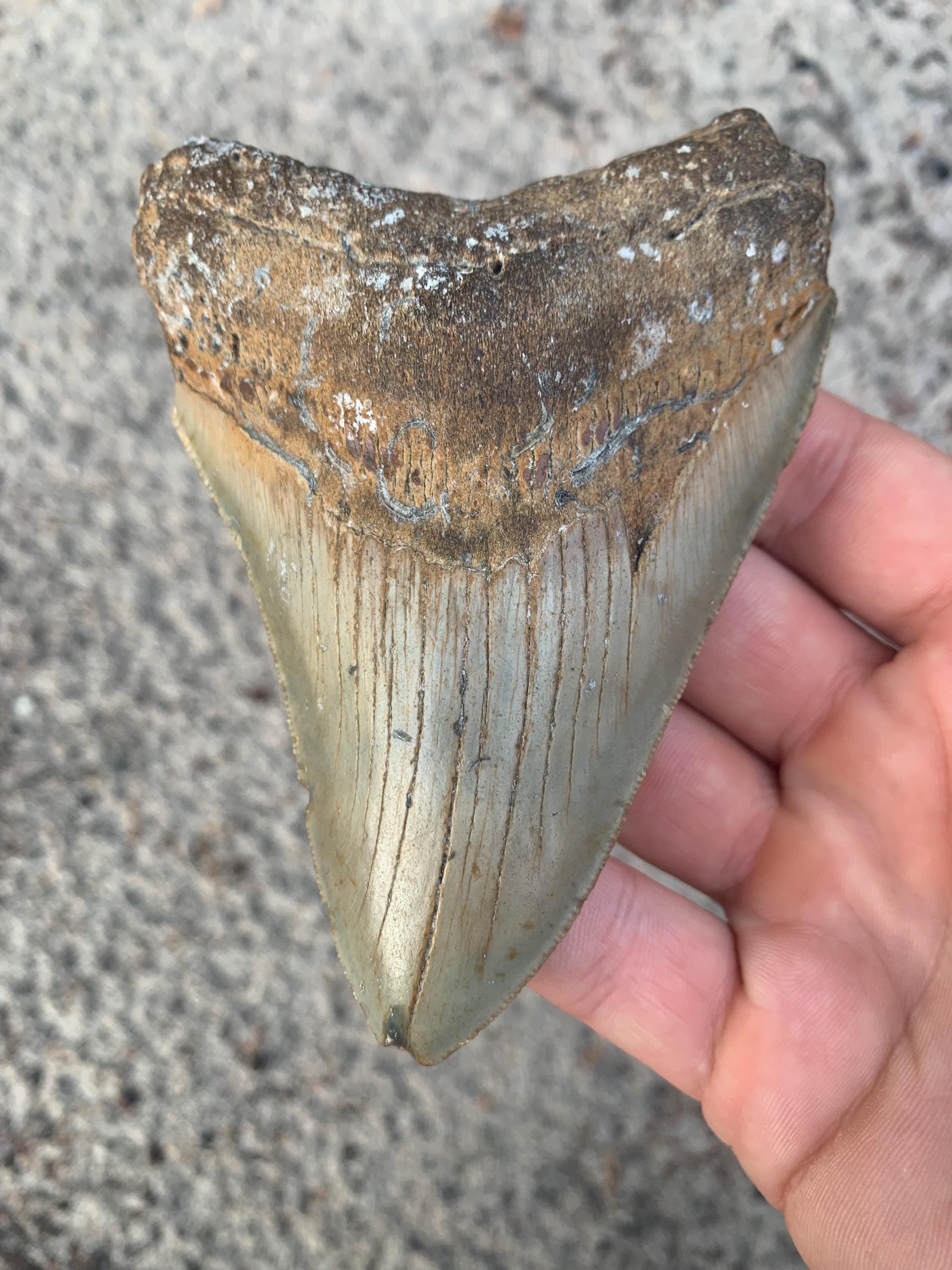 All of the shop's shark teeth are found by me diving in around 100 feet of water off of the North Carolina coast. The teeth are from the Miocene period and are between 18 - 2.5 million years old. All teeth are 100% original with no restoration or repair.