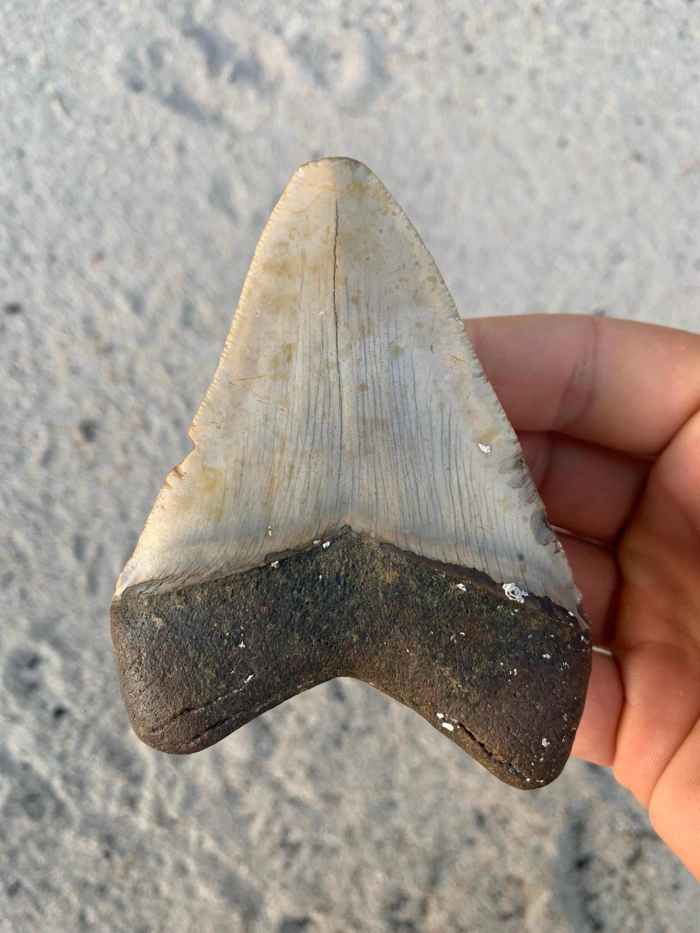 Megalodon Tooth - 3.84 inches - Real Otodus Megalodon, Authentic Shark Tooth Fossil, Huge Megalodon Tooth, Meg Teeth