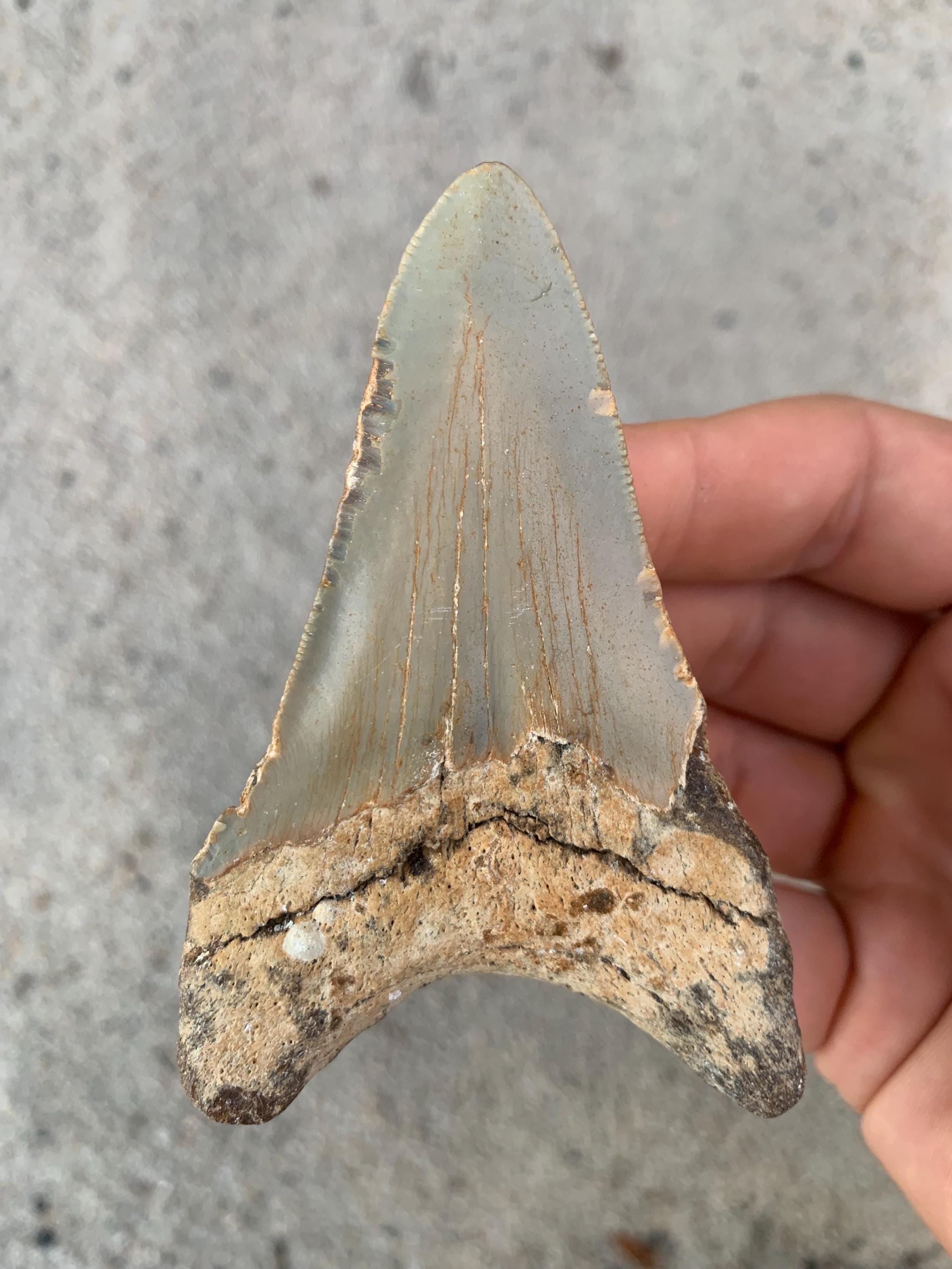 All of the shop's shark teeth are found by me diving in around 100 feet of water off of the North Carolina coast. The teeth are from the Miocene period and are between 18 - 2.5 million years old. All teeth are 100% original with no restoration or repair.