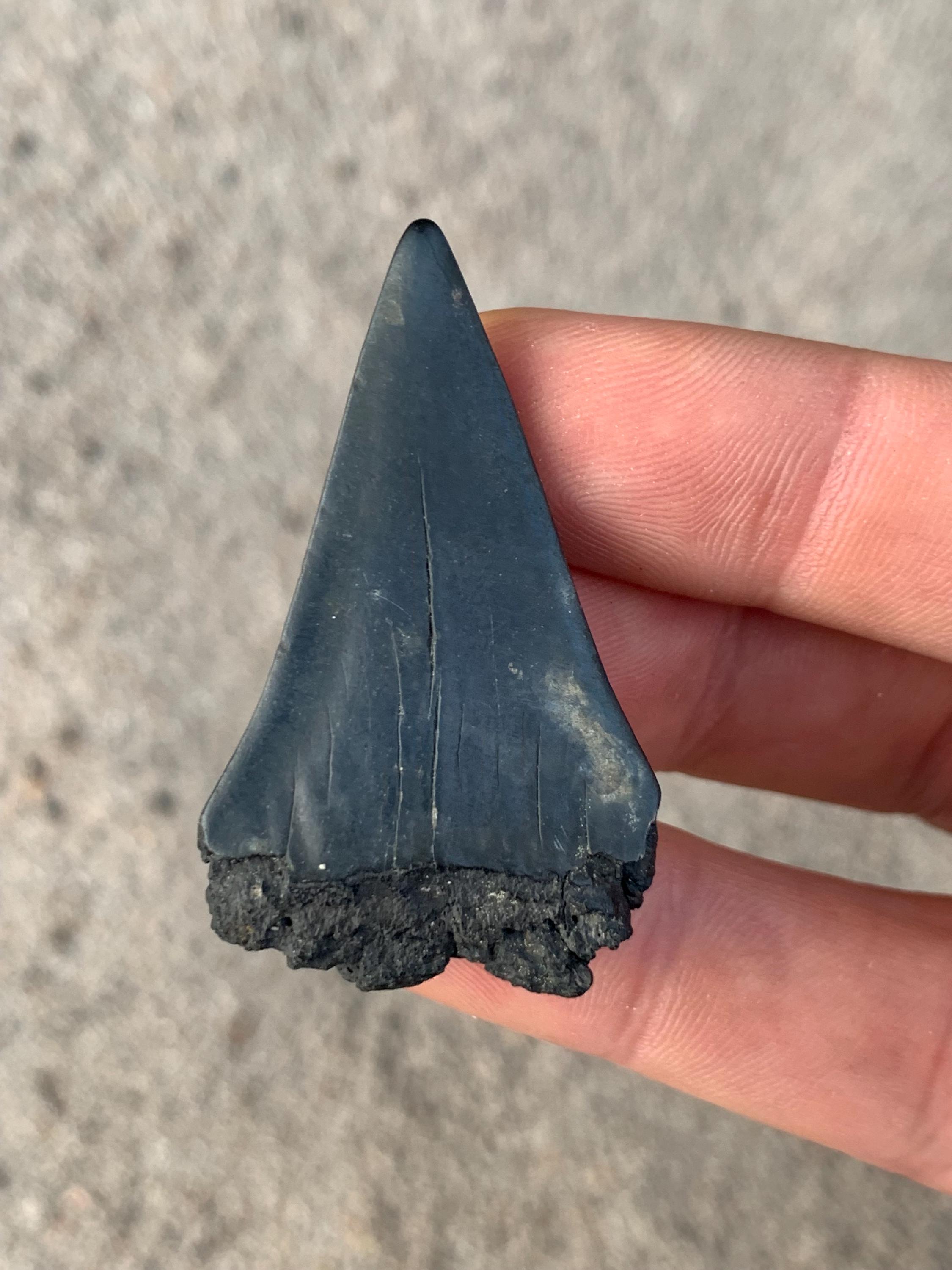 All of the shop's shark teeth are found by me diving in around 100 feet of water off of the North Carolina coast. The teeth are from the Miocene period and are between 18 - 2.5 million years old. All teeth are 100% original with no restoration or repair.