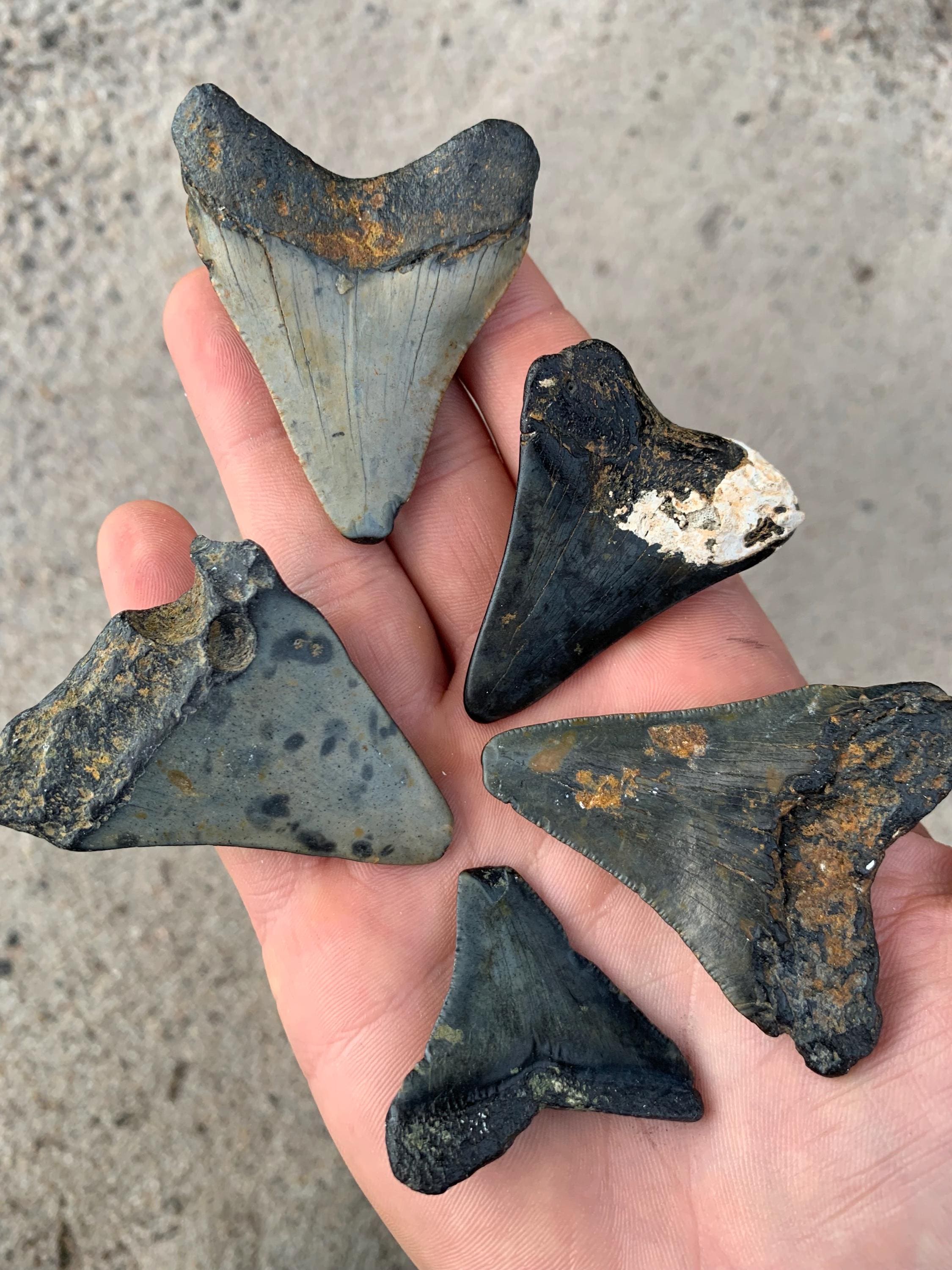 5 Megalodon Shark Teeth - Real Otodus Megalodon, Authentic Shark Tooth Fossil, Huge Megalodon Tooth, Meg Teeth