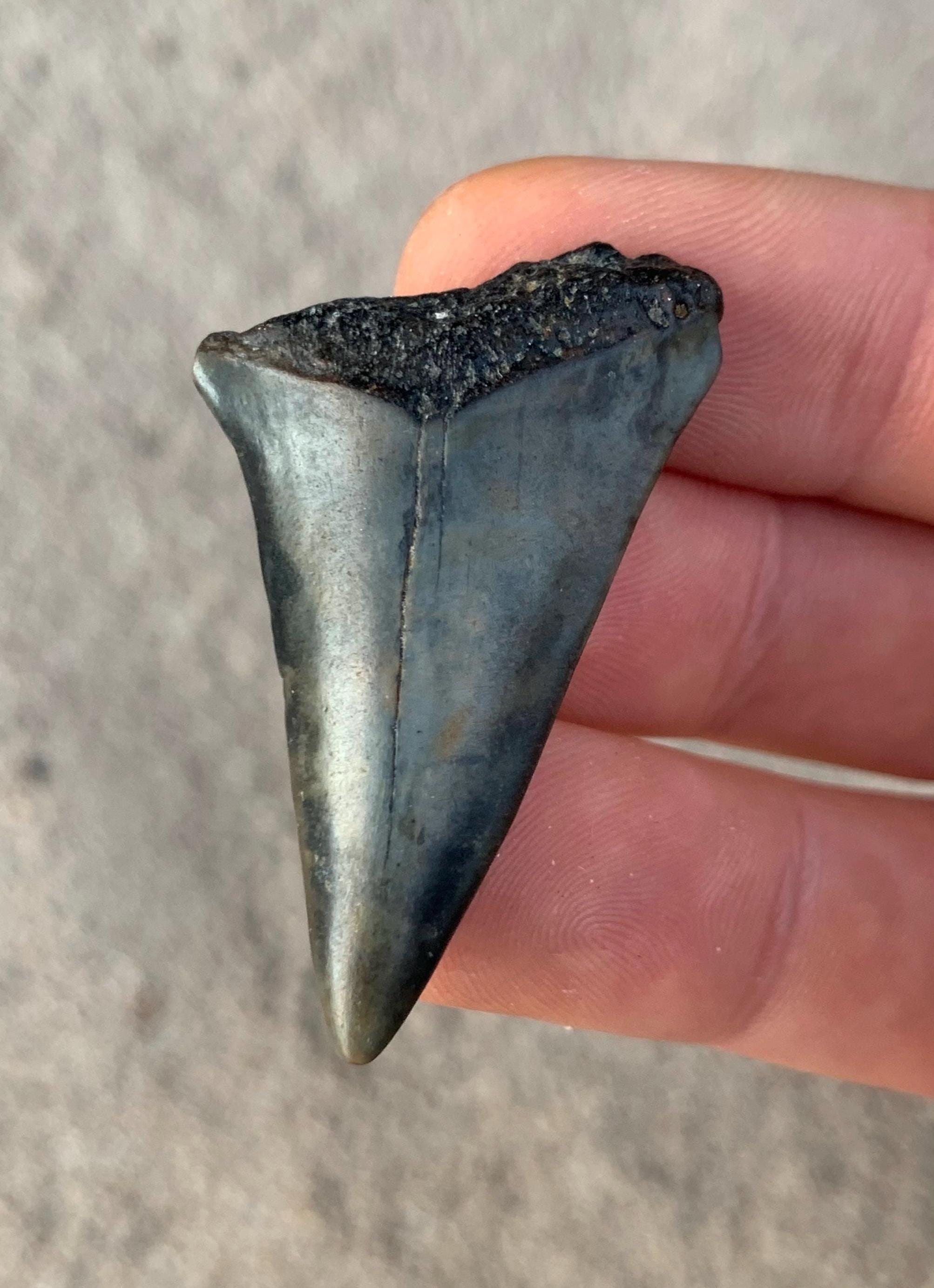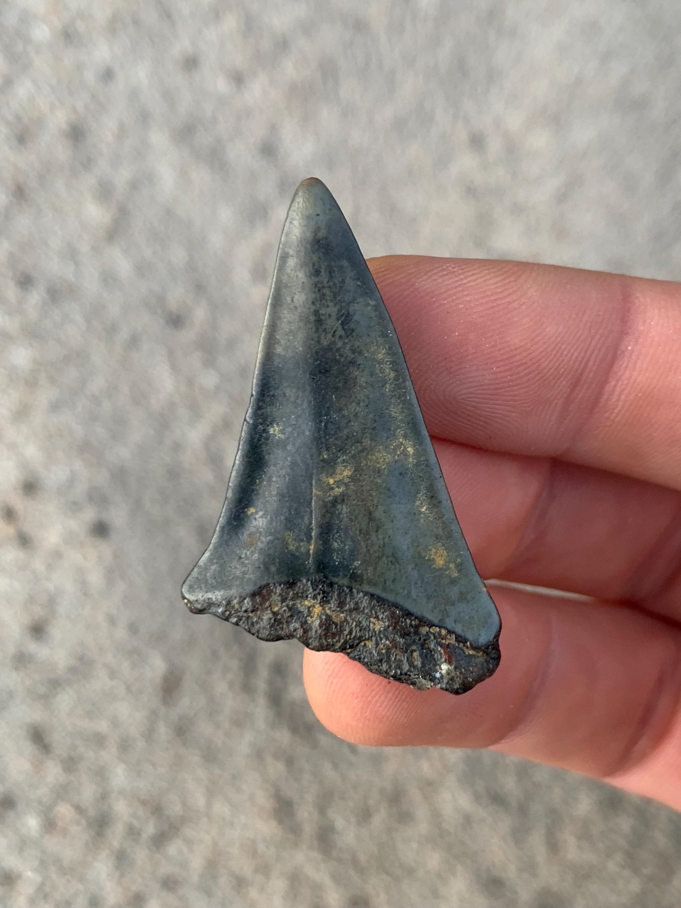 All of the shop's shark teeth are found by me diving in around 100 feet of water off of the North Carolina coast. The teeth are from the Miocene period and are between 18 - 2.5 million years old. All teeth are 100% original with no restoration or repair.
