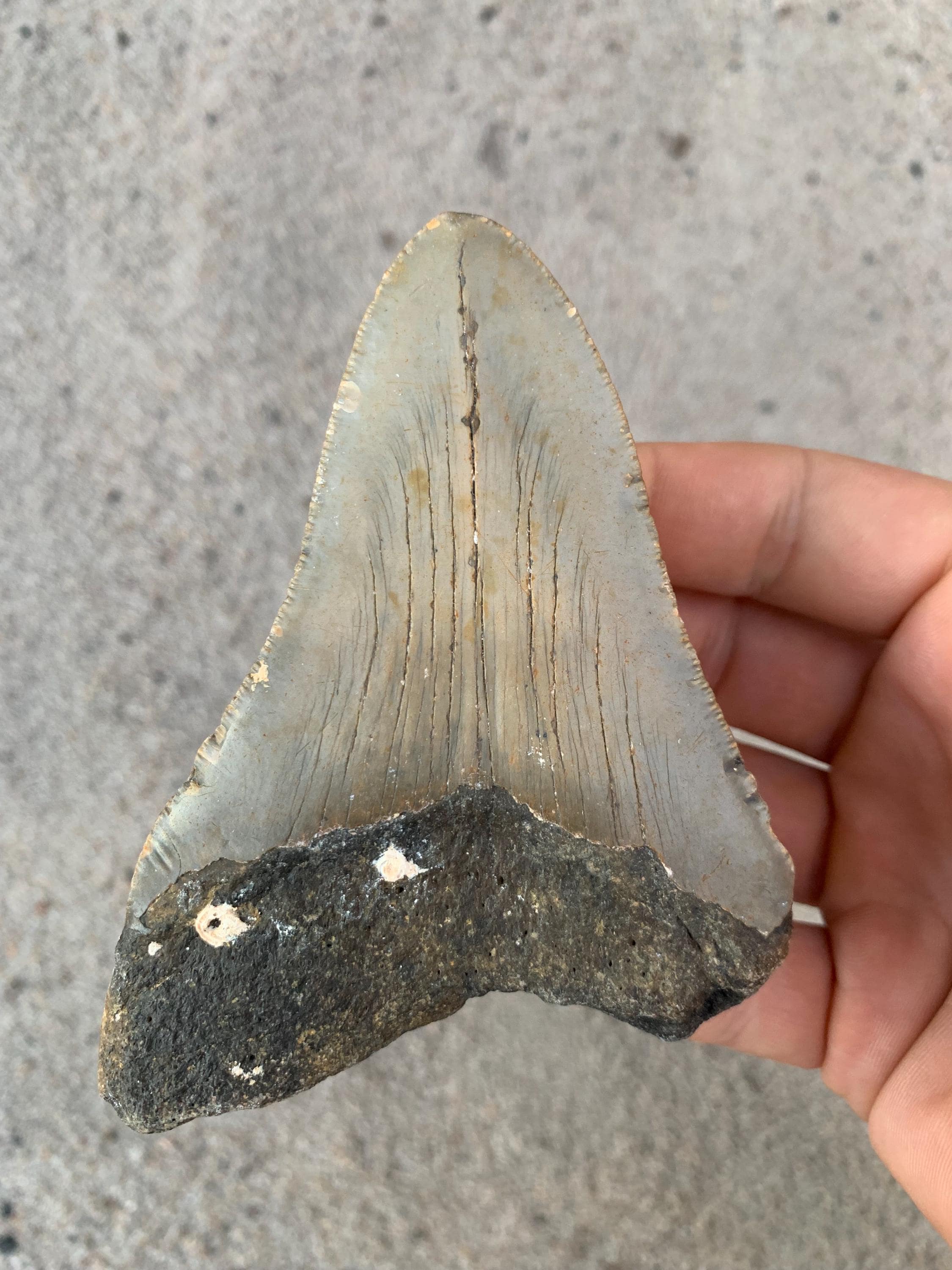 All of the shop's shark teeth are found by me diving in around 100 feet of water off of the North Carolina coast. The teeth are from the Miocene period and are between 18 - 2.5 million years old. All teeth are 100% original with no restoration or repair.