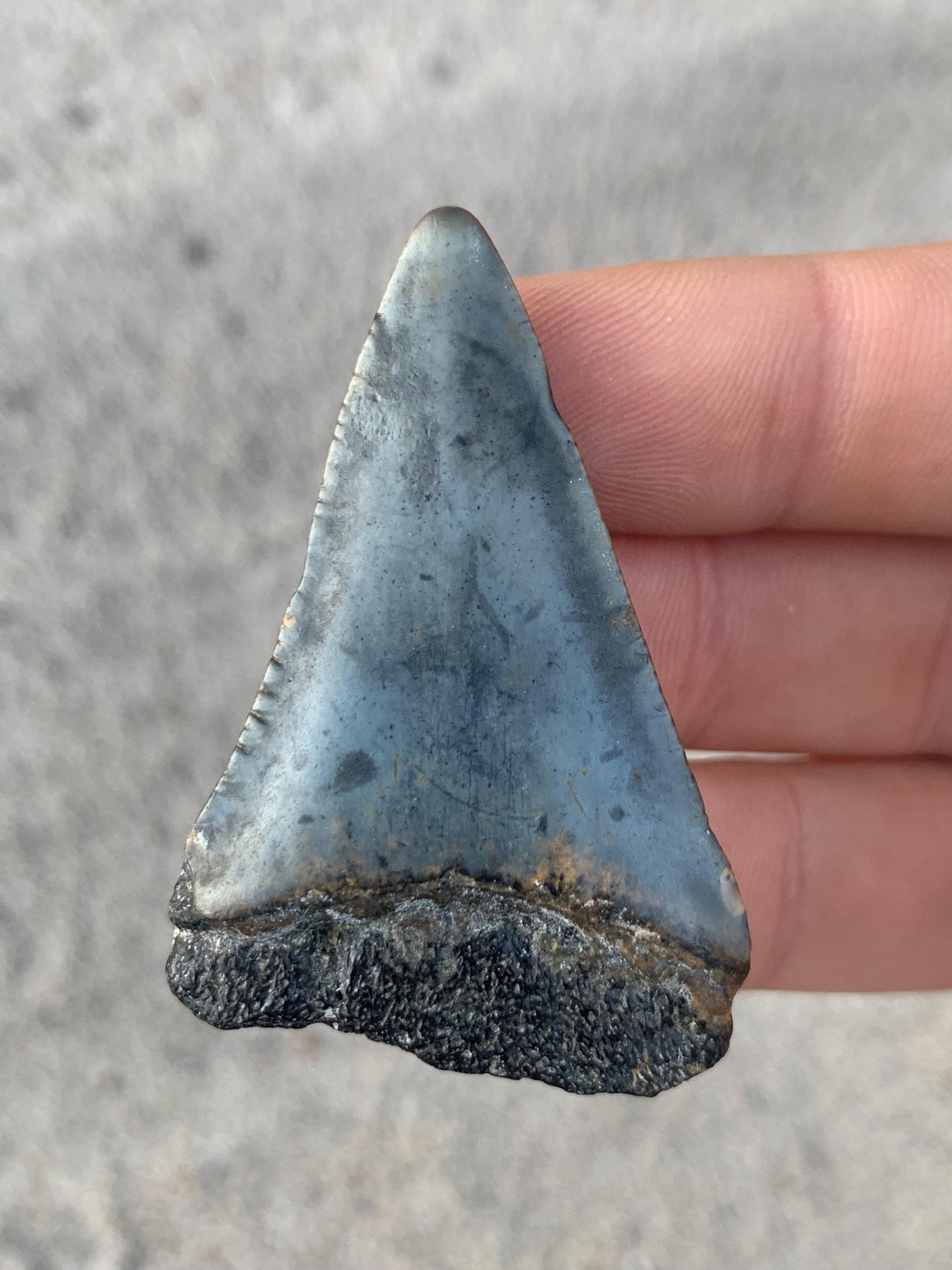 All of the shop's shark teeth are found by me diving in around 100 feet of water off of the North Carolina coast. The teeth are from the Miocene period and are between 18 - 2.5 million years old. All teeth are 100% original with no restoration or repair.