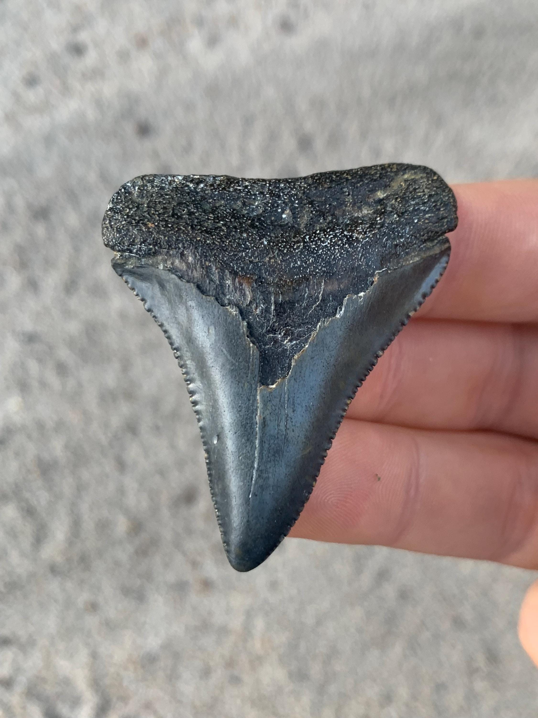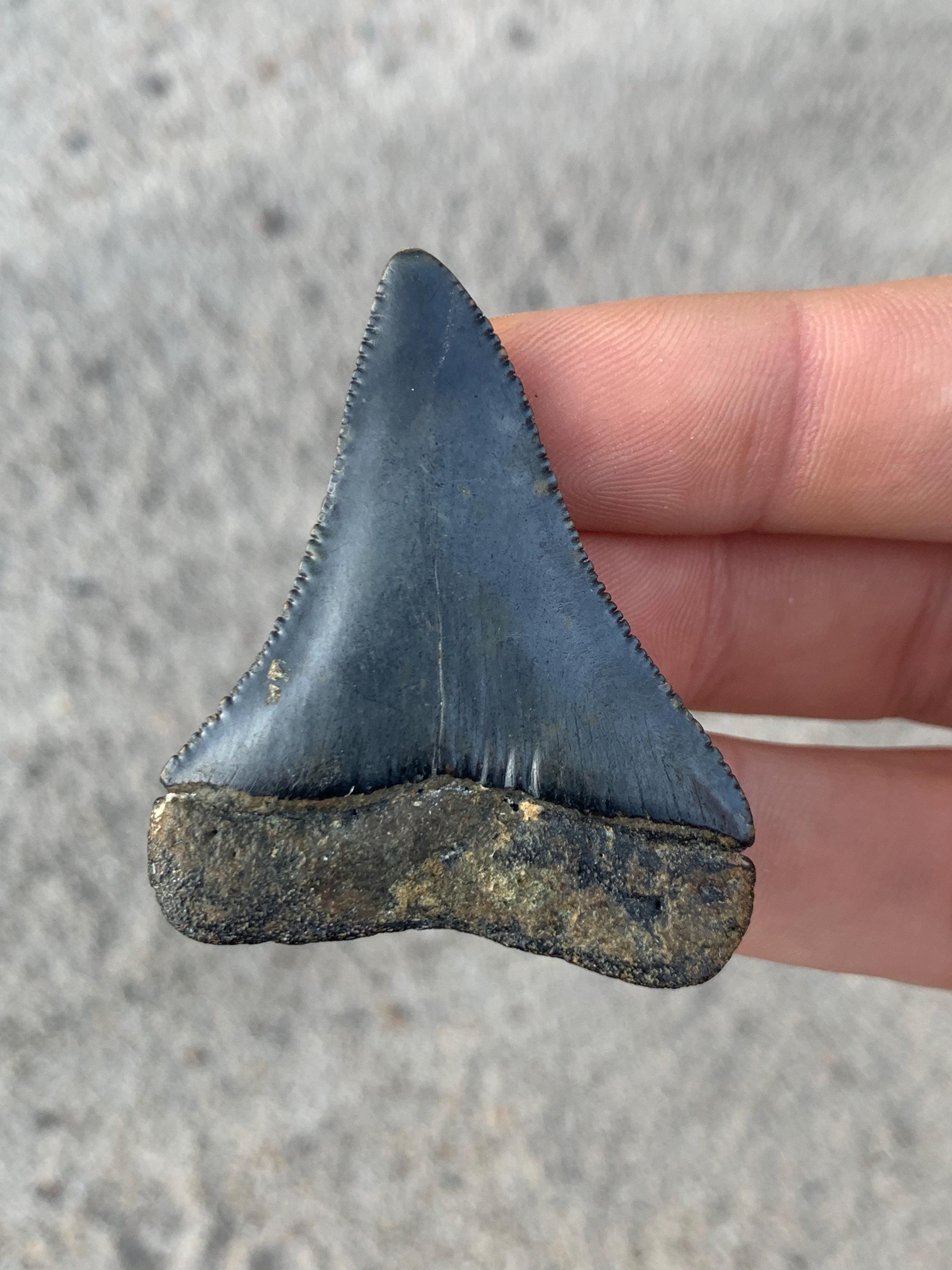 All of the shop's shark teeth are found by me diving in around 100 feet of water off of the North Carolina coast. The teeth are from the Miocene period and are between 18 - 2.5 million years old. All teeth are 100% original with no restoration or repair.