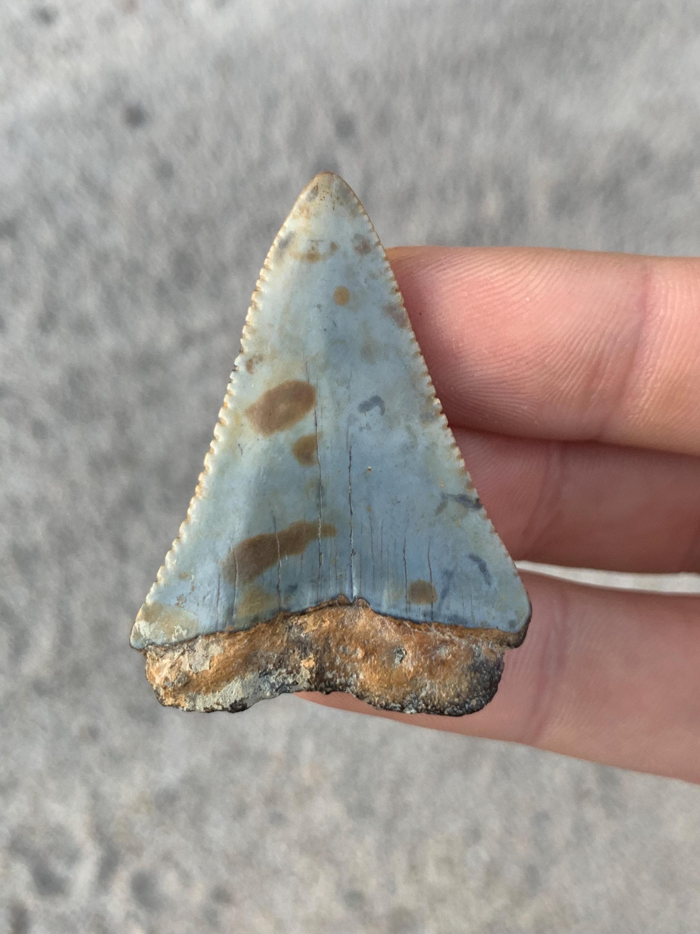 All of the shop's shark teeth are found by me diving in around 100 feet of water off of the North Carolina coast. The teeth are from the Miocene period and are between 18 - 2.5 million years old. All teeth are 100% original with no restoration or repair.