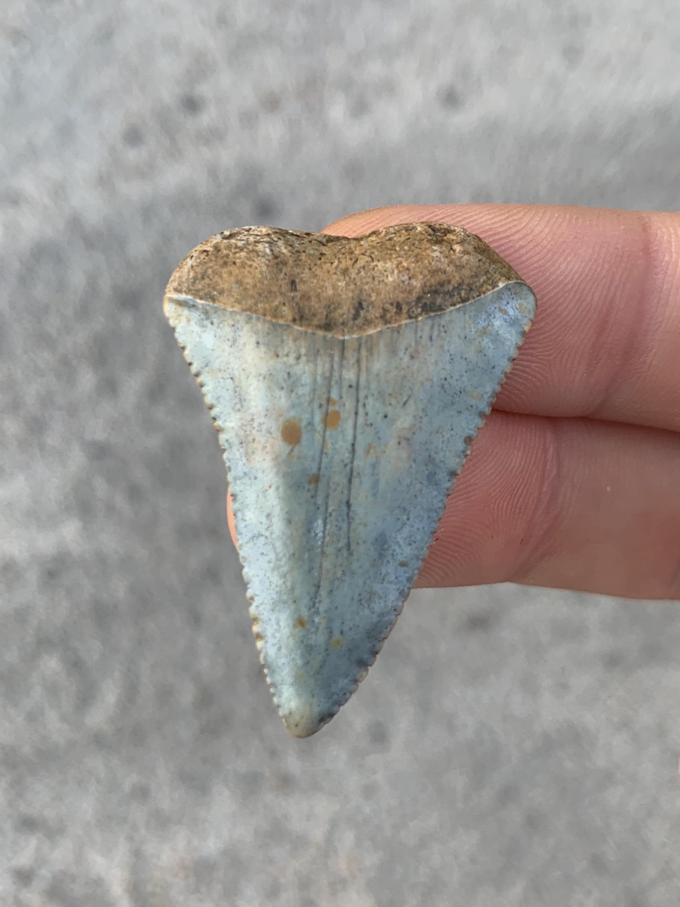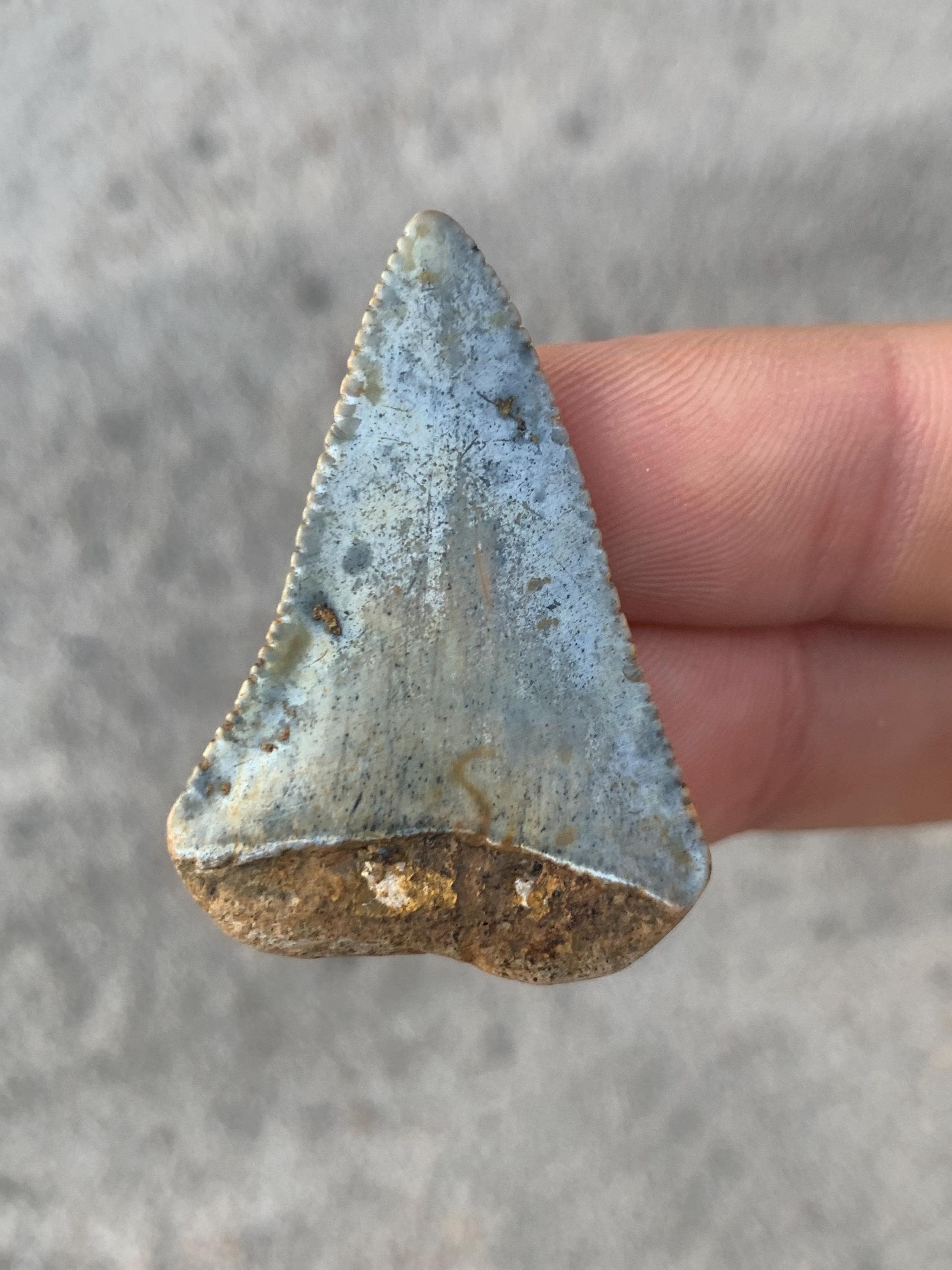 All of the shop's shark teeth are found by me diving in around 100 feet of water off of the North Carolina coast. The teeth are from the Miocene period and are between 18 - 2.5 million years old. All teeth are 100% original with no restoration or repair.