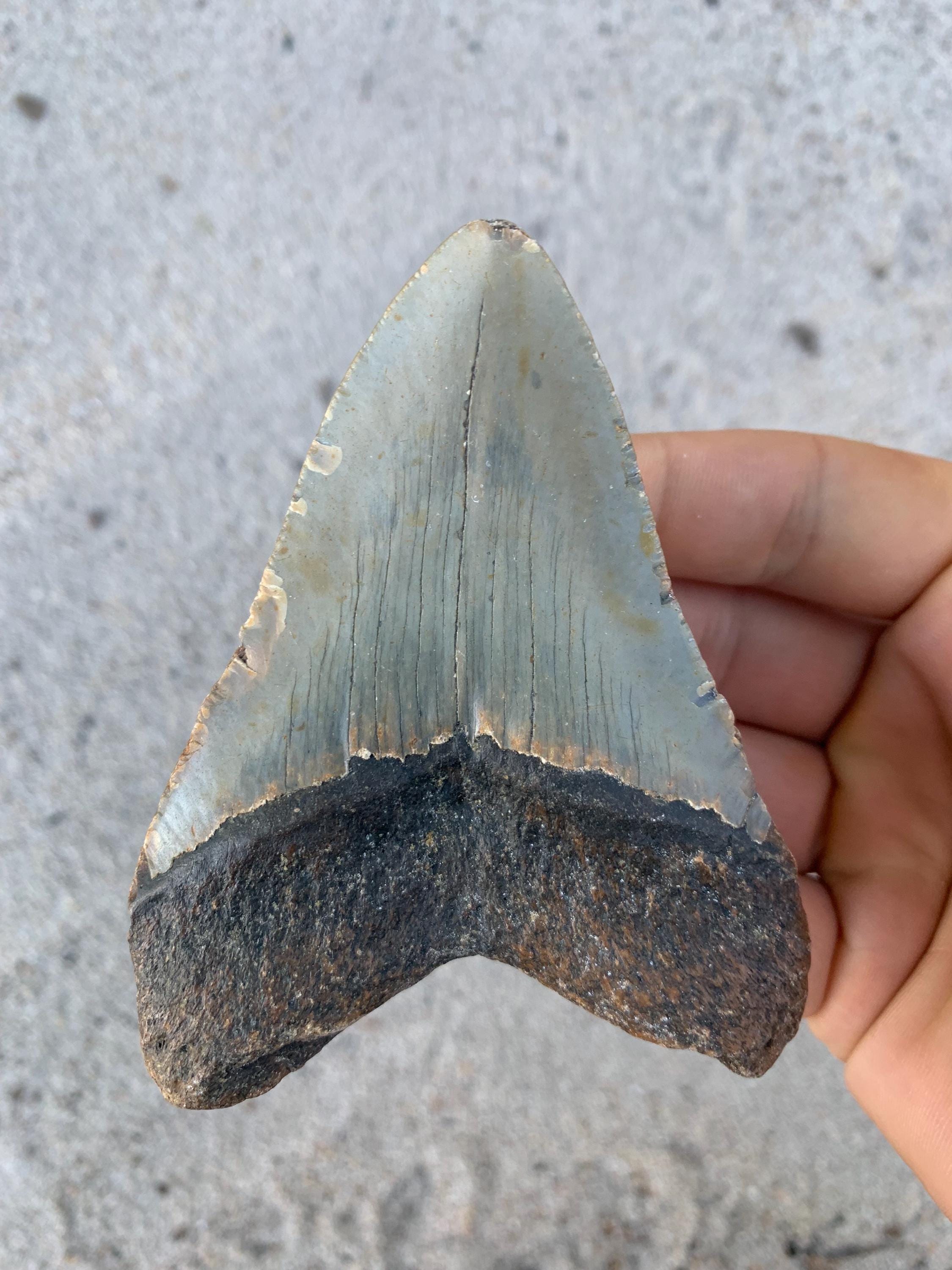 All of the shop's shark teeth are found by me diving in around 100 feet of water off of the North Carolina coast. The teeth are from the Miocene period and are between 18 - 2.5 million years old. All teeth are 100% original with no restoration or repair.