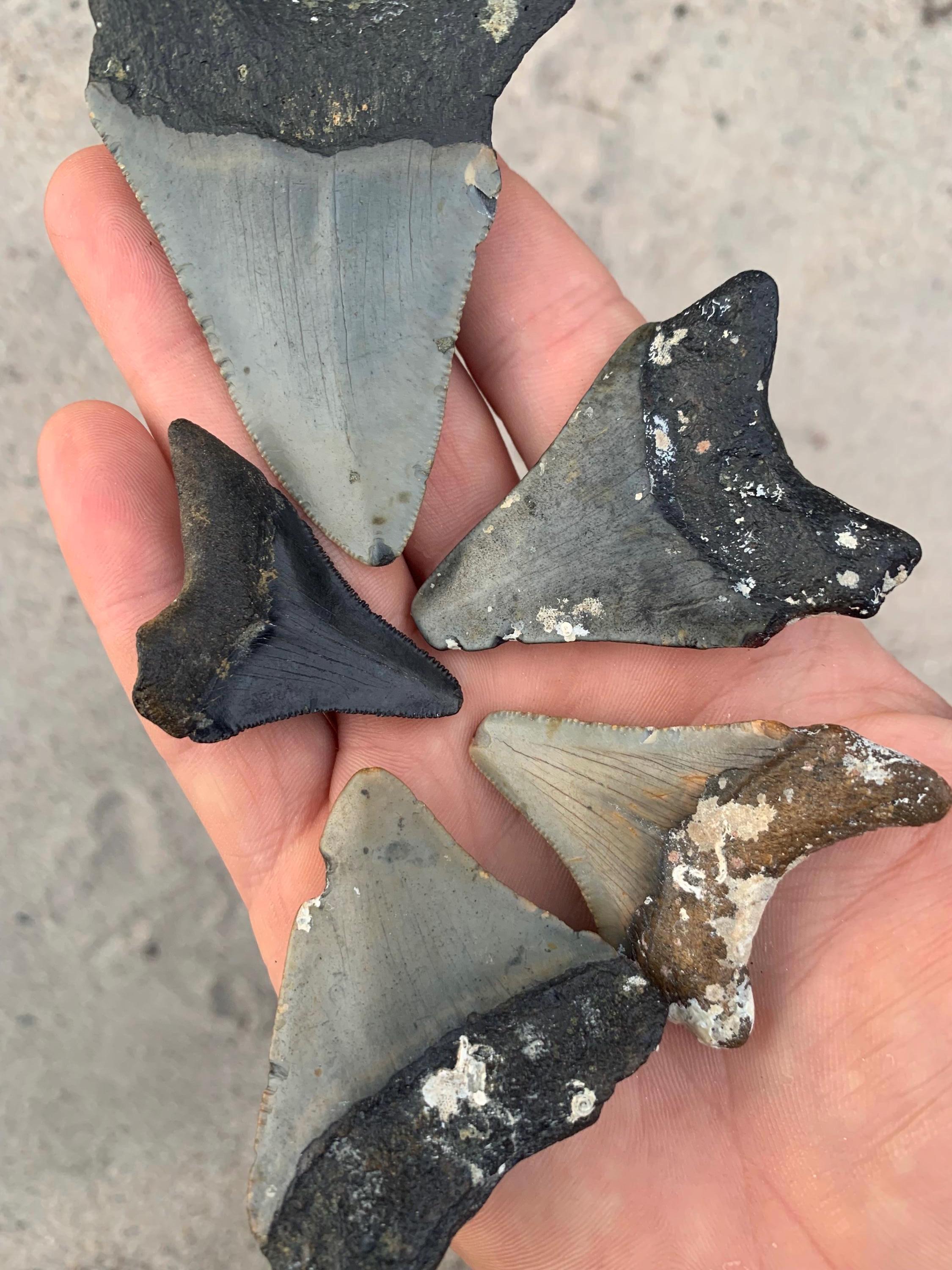 5 Megalodon Shark Teeth - Real Otodus Megalodon, Authentic Shark Tooth Fossil, Huge Megalodon Tooth, Meg Teeth
