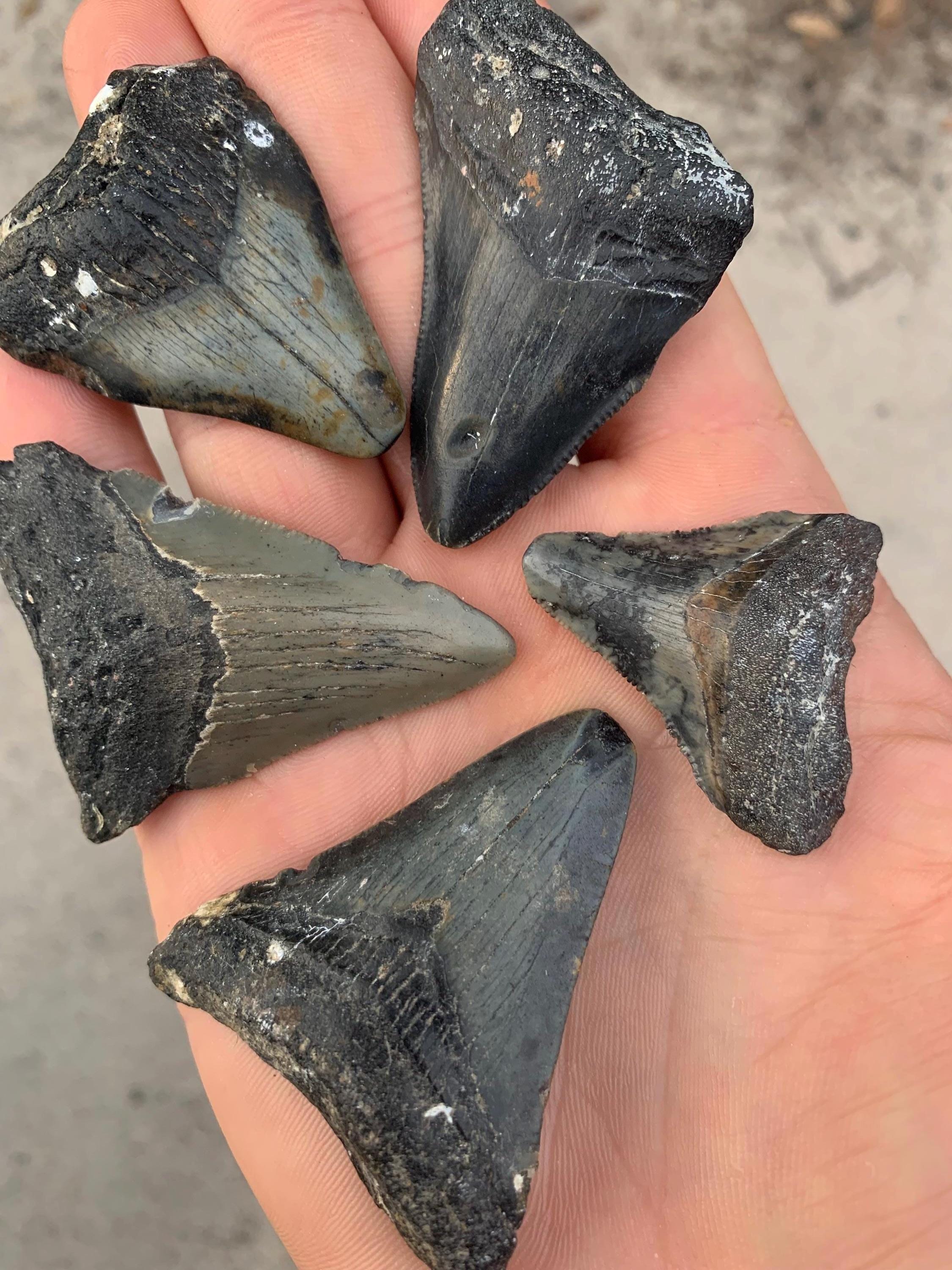 5 Megalodon Shark Teeth - Real Otodus Megalodon, Authentic Shark Tooth Fossil, Huge Megalodon Tooth, Meg Teeth