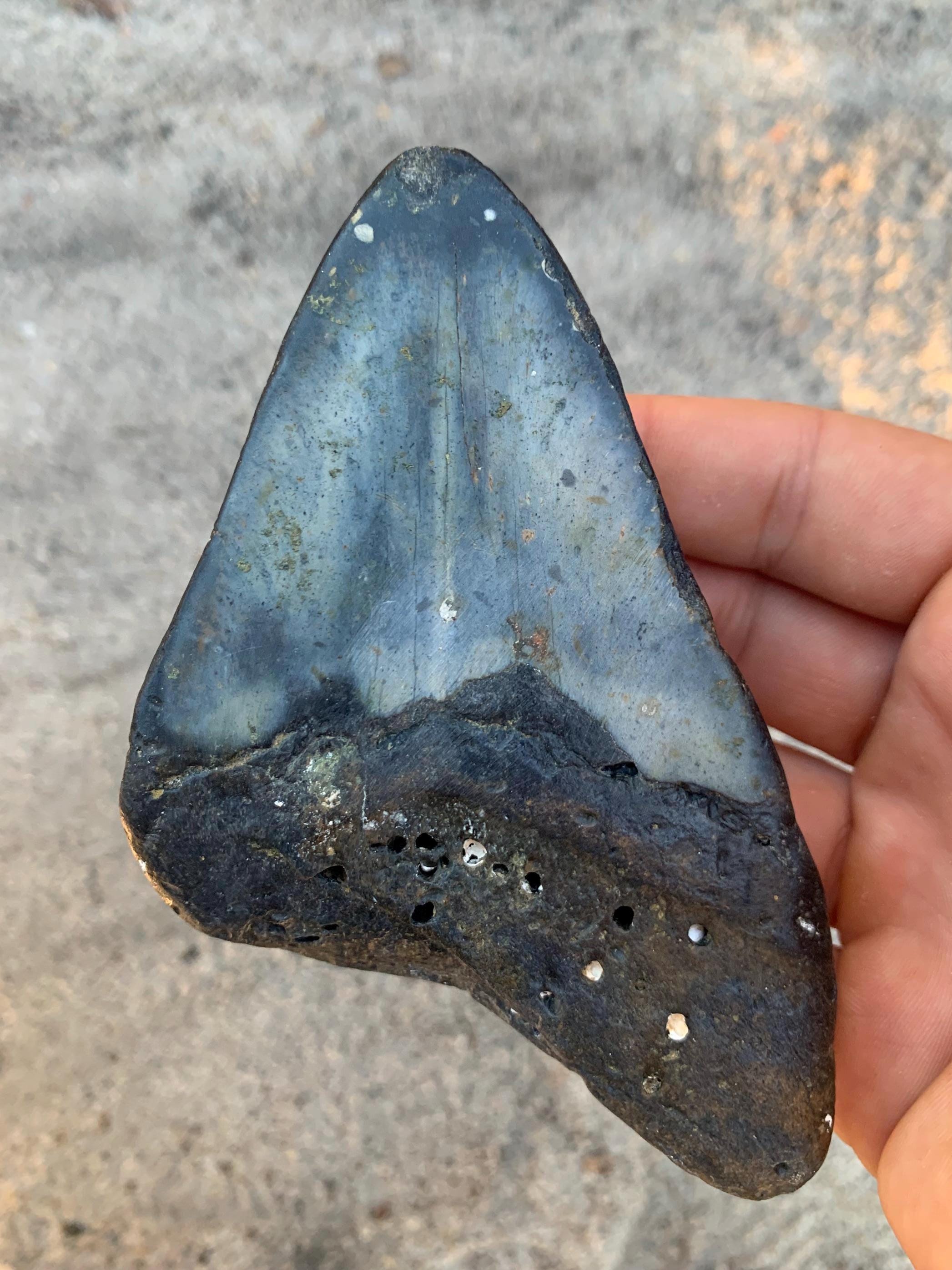 All of the shop's shark teeth are found by me diving in around 100 feet of water off of the North Carolina coast. The teeth are from the Miocene period and are between 18 - 2.5 million years old. All teeth are 100% original with no restoration or repair.