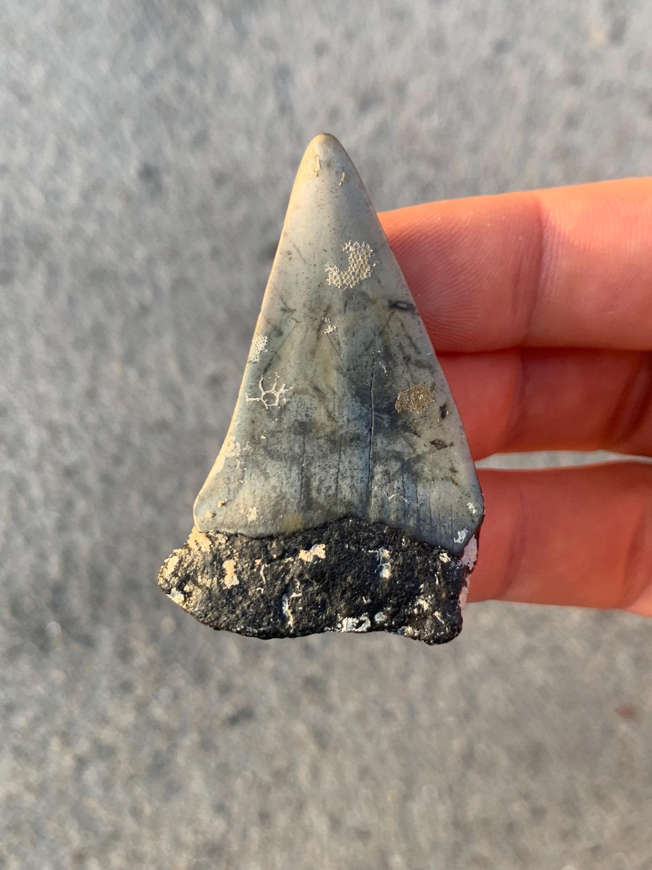 All of the shop's shark teeth are found by me diving in around 100 feet of water off of the North Carolina coast. The teeth are from the Miocene period and are between 18 - 2.5 million years old. All teeth are 100% original with no restoration or repair.