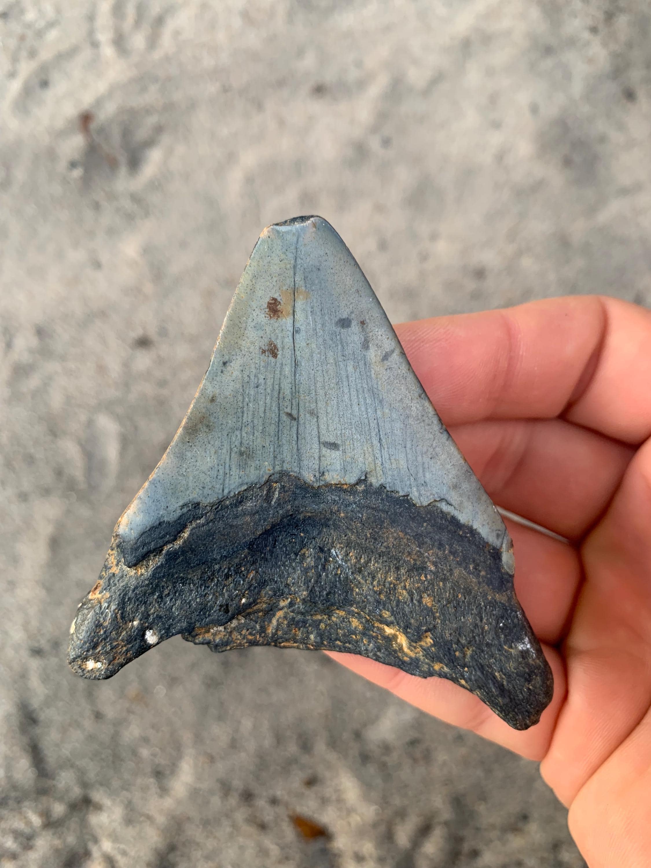 All of the shop's shark teeth are found by me diving in around 100 feet of water off of the North Carolina coast. The teeth are from the Miocene period and are between 18 - 2.5 million years old. All teeth are 100% original with no restoration or repair.
