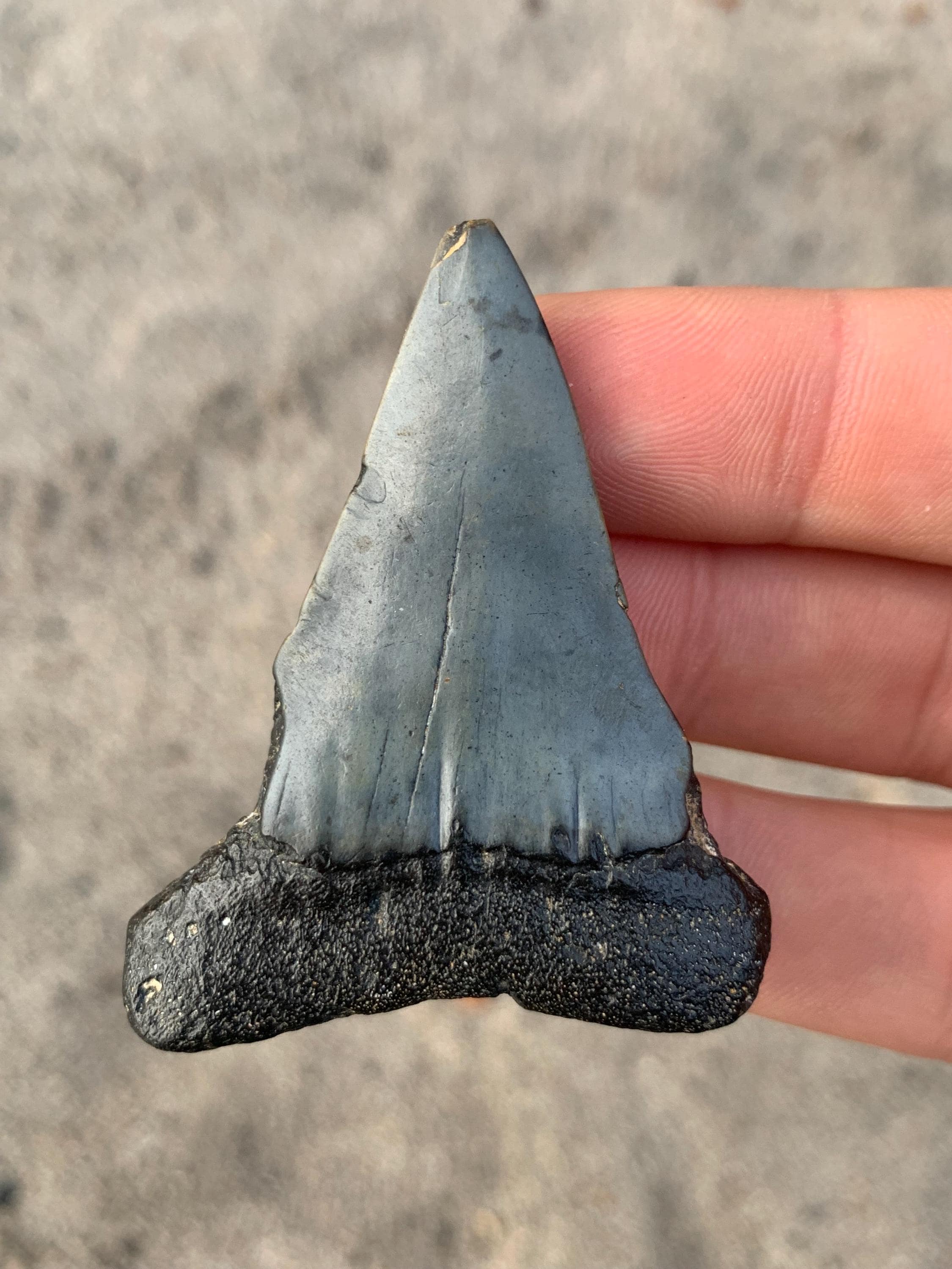 All of the shop's shark teeth are found by me diving in around 100 feet of water off of the North Carolina coast. The teeth are from the Miocene period and are between 18 - 2.5 million years old. All teeth are 100% original with no restoration or repair.