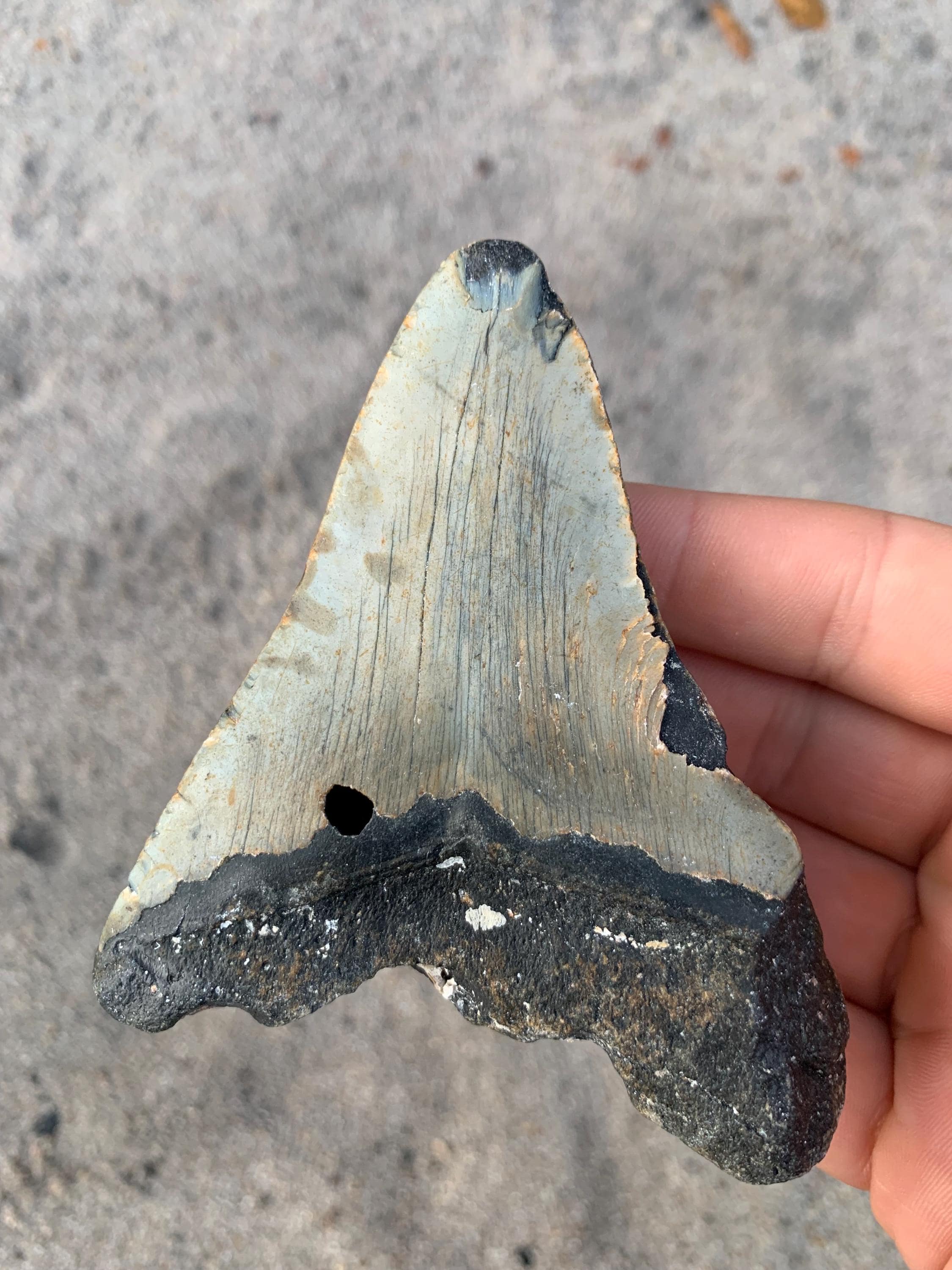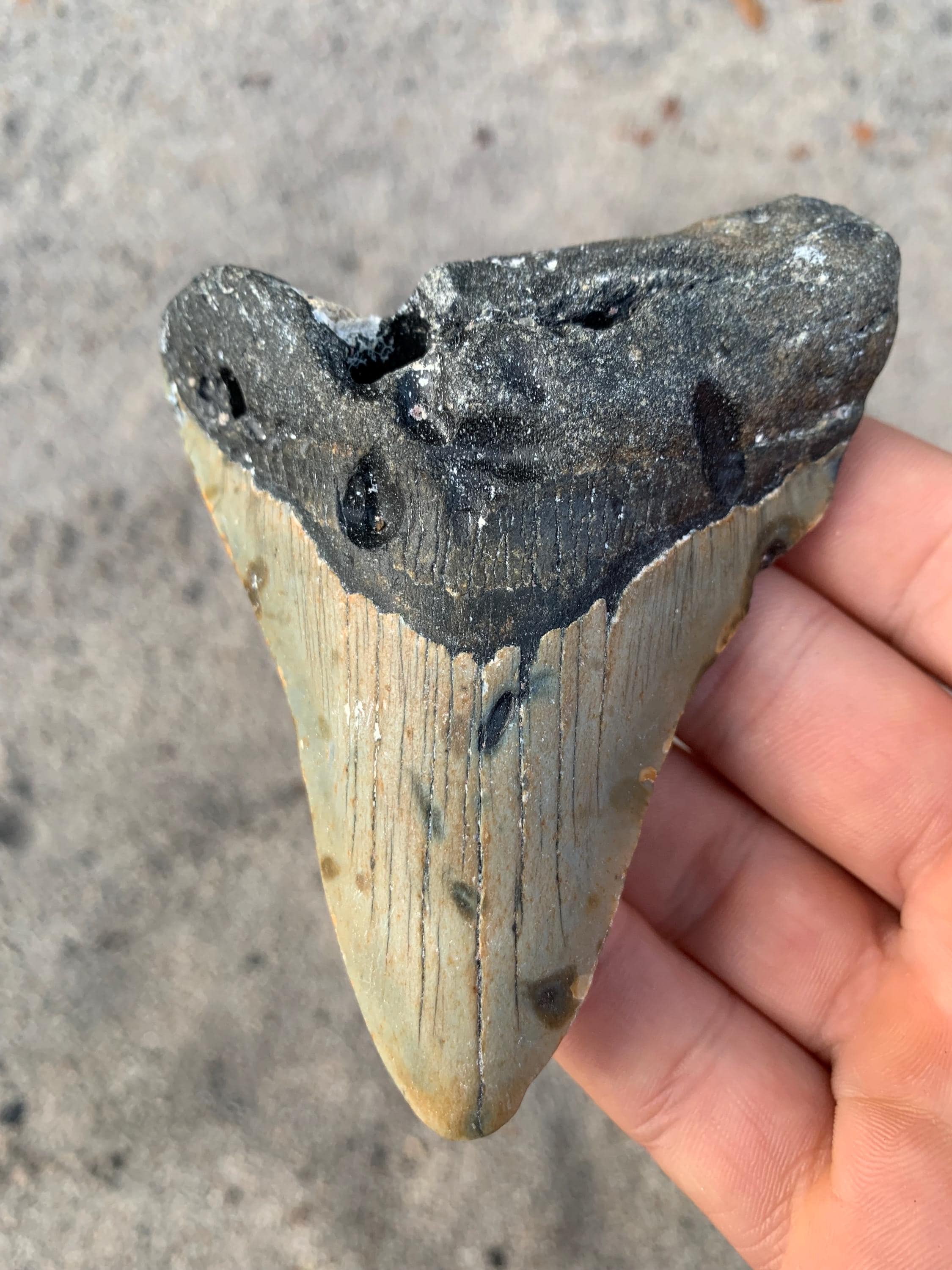 All of the shop's shark teeth are found by me diving in around 100 feet of water off of the North Carolina coast. The teeth are from the Miocene period and are between 18 - 2.5 million years old. All teeth are 100% original with no restoration or repair.