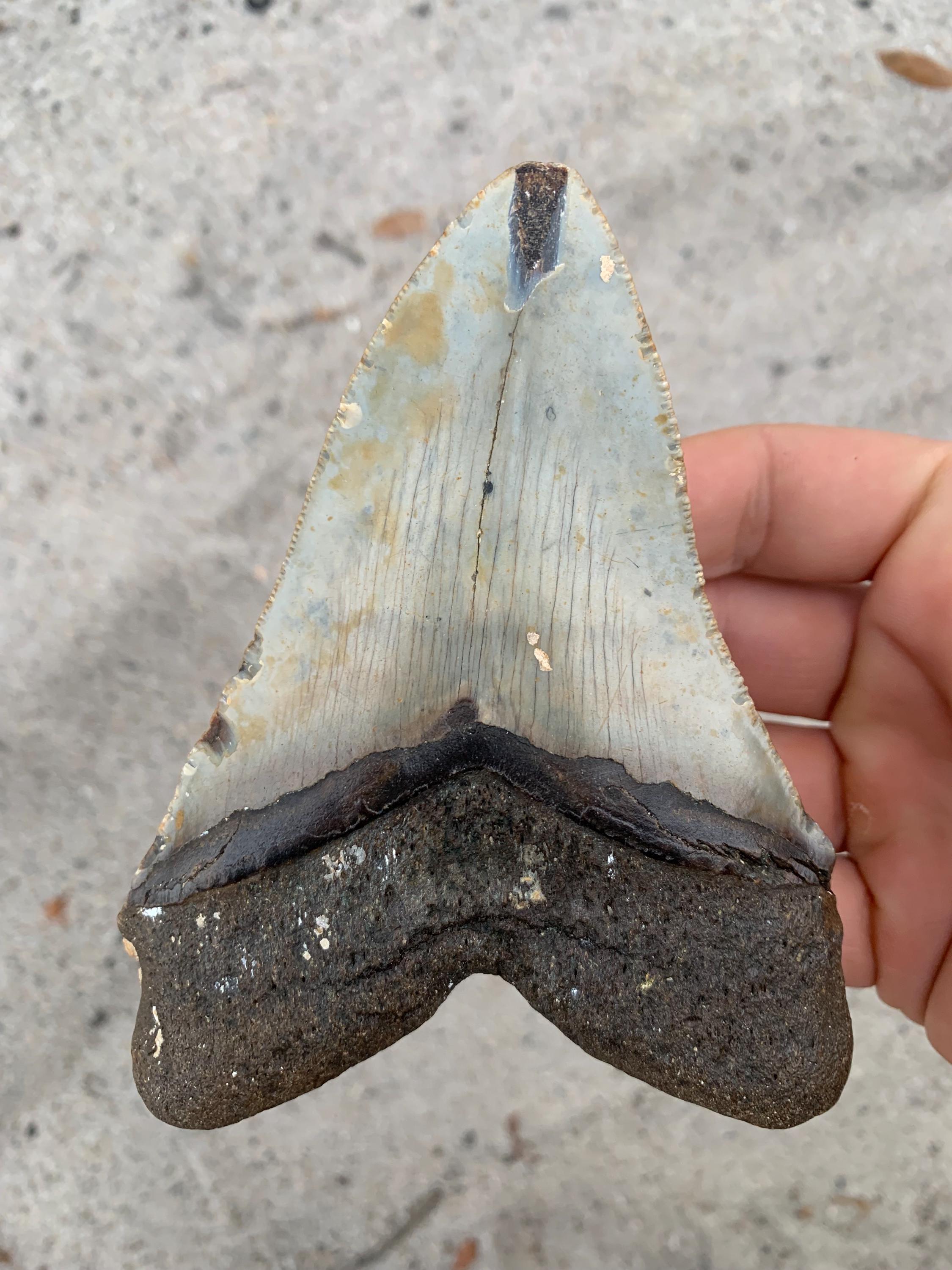 All of the shop's shark teeth are found by me diving in around 100 feet of water off of the North Carolina coast. The teeth are from the Miocene period and are between 18 - 2.5 million years old. All teeth are 100% original with no restoration or repair.