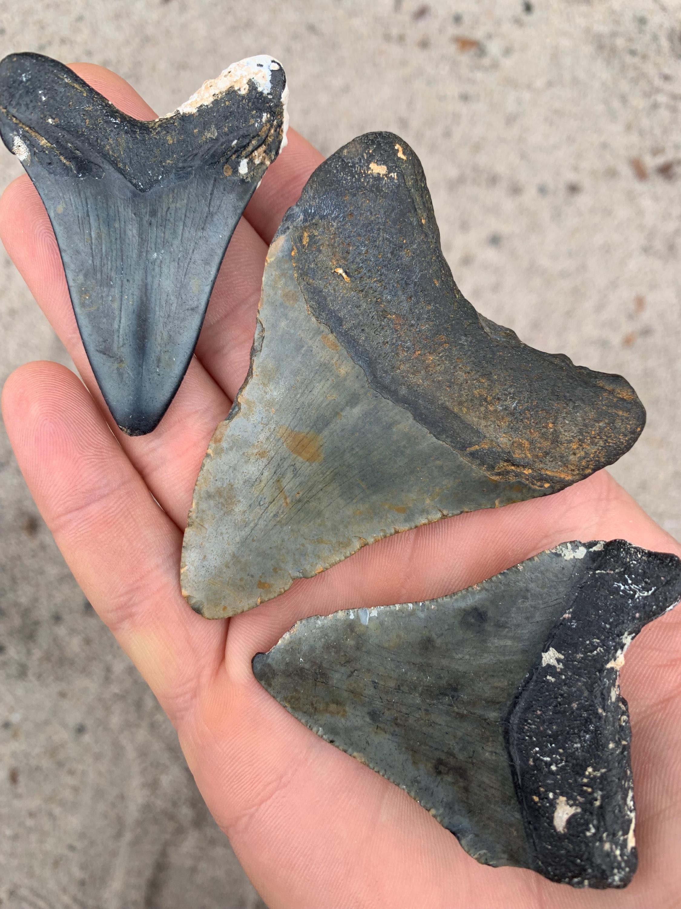 3 Megalodon Shark Teeth - Real Otodus Megalodon, Authentic Shark Tooth Fossil, Huge Megalodon Tooth, Meg Teeth