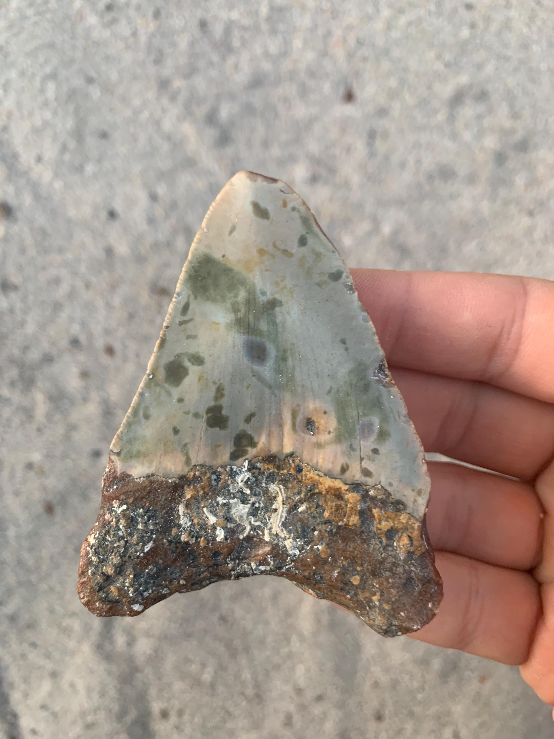 All of the shop's shark teeth are found by me diving in around 100 feet of water off of the North Carolina coast. The teeth are from the Miocene period and are between 18 - 2.5 million years old. All teeth are 100% original with no restoration or repair.