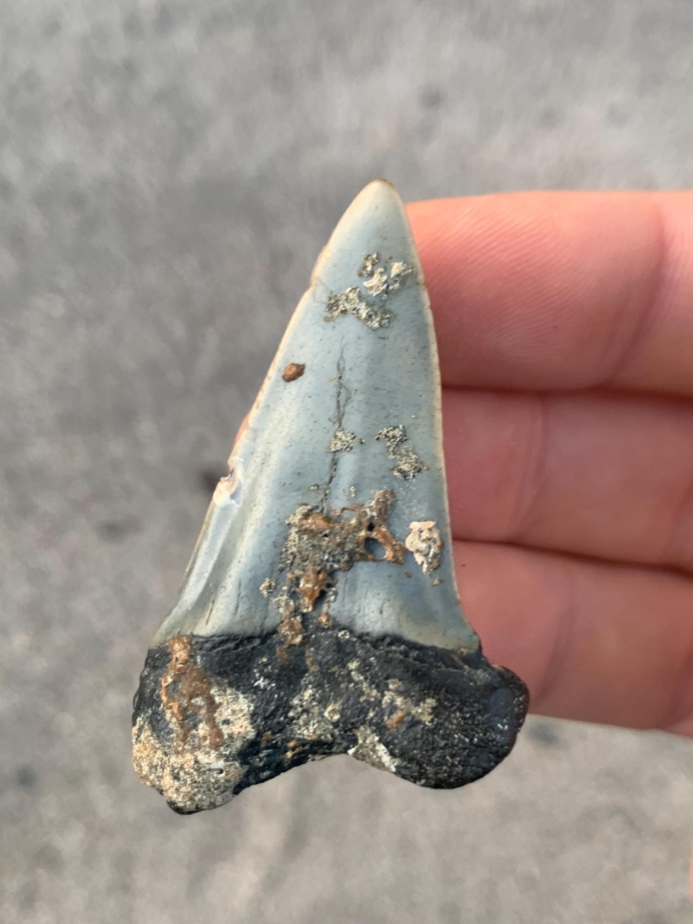 All of the shop's shark teeth are found by me diving in around 100 feet of water off of the North Carolina coast. The teeth are from the Miocene period and are between 18 - 2.5 million years old. All teeth are 100% original with no restoration or repair.