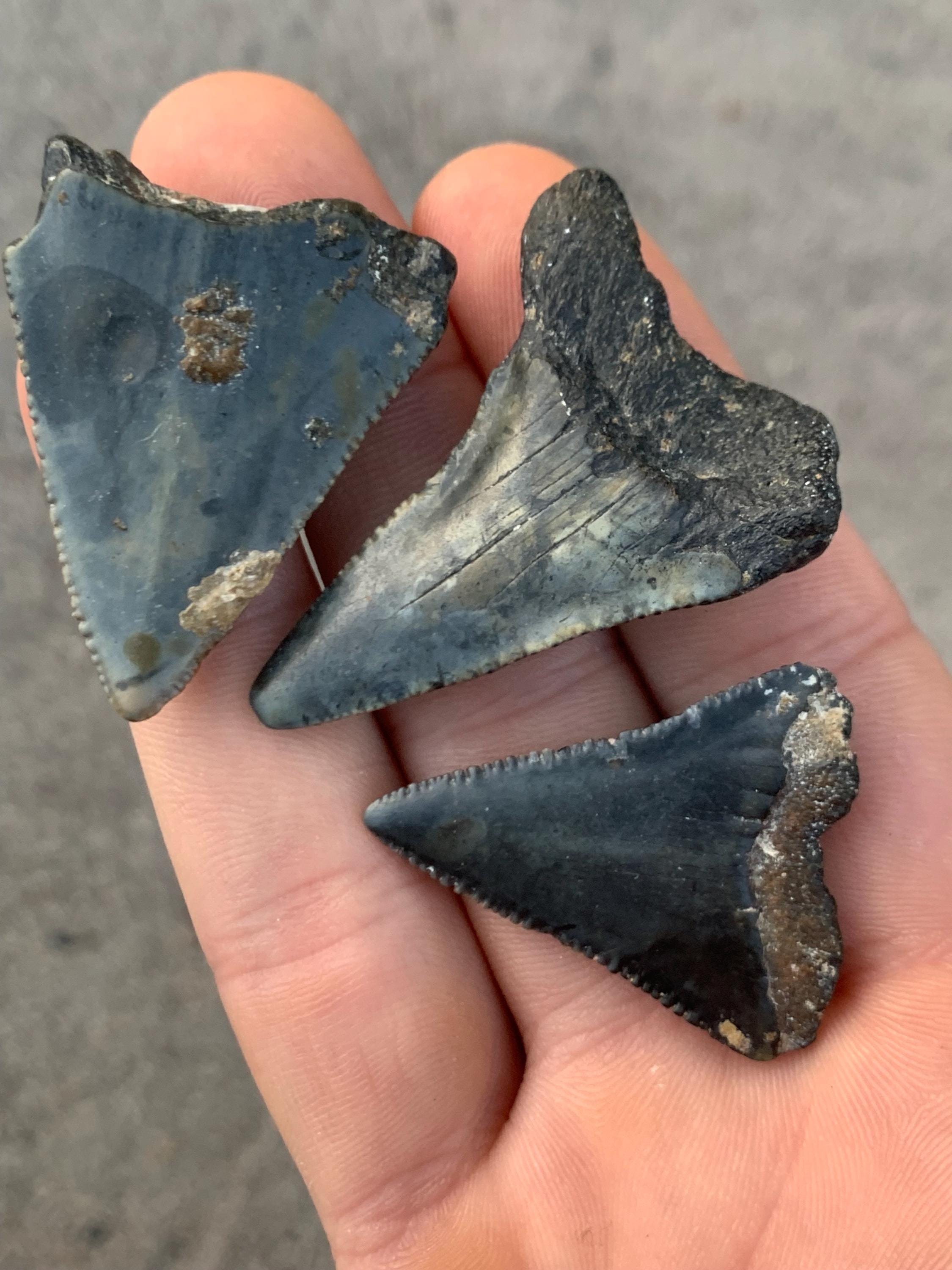 3 great white shark tooth fossils. Authentic Shark tooth fossils