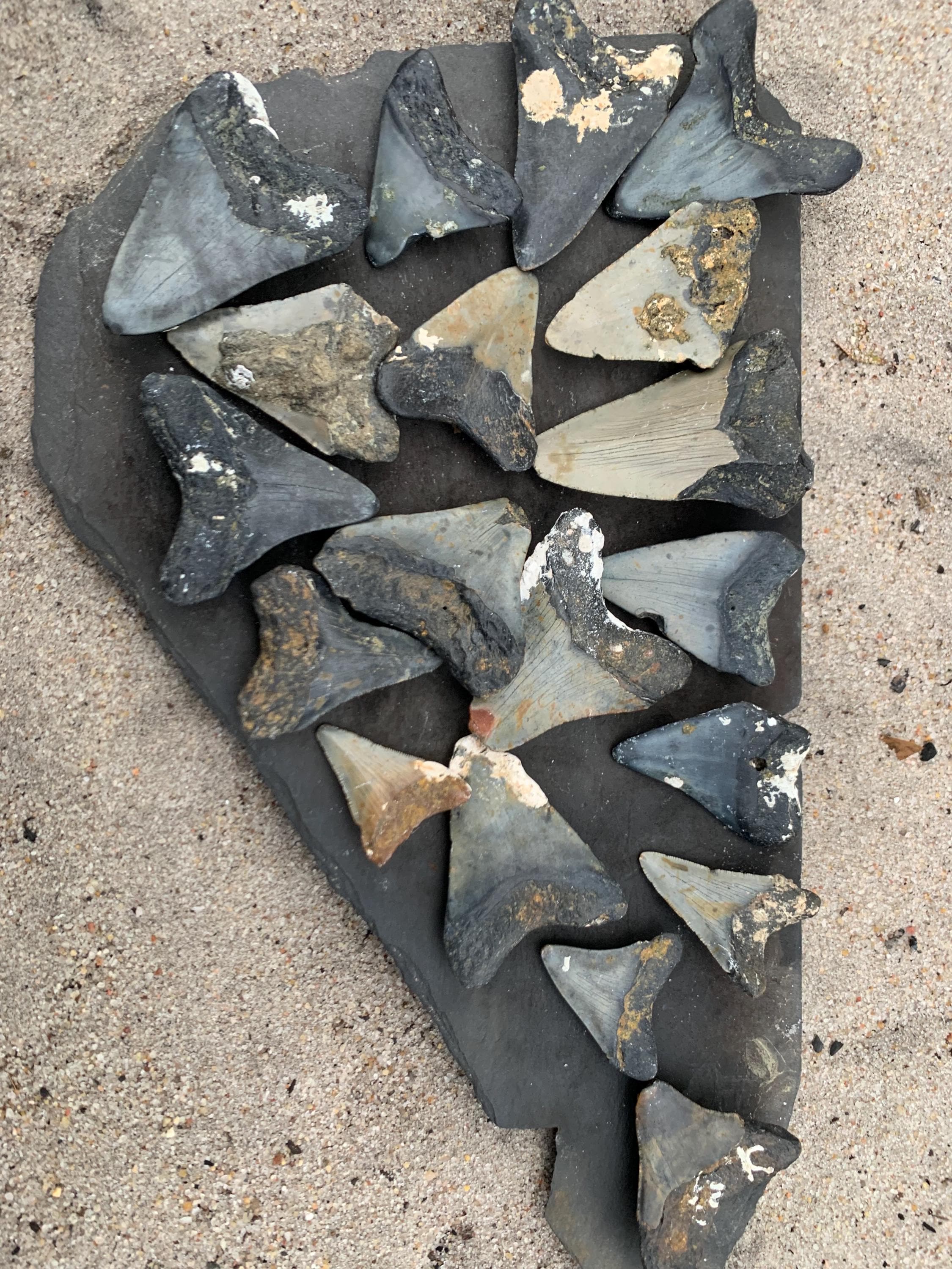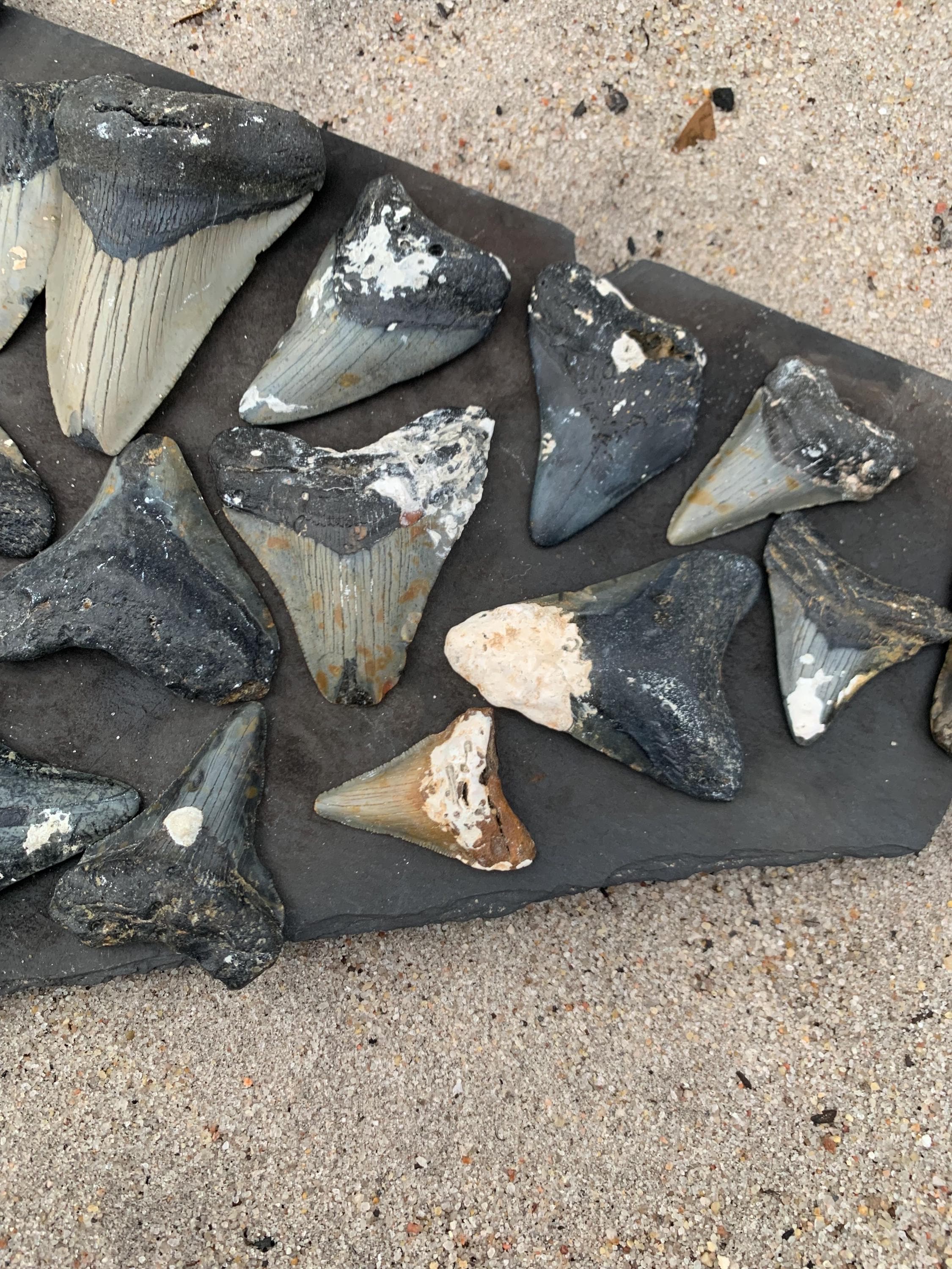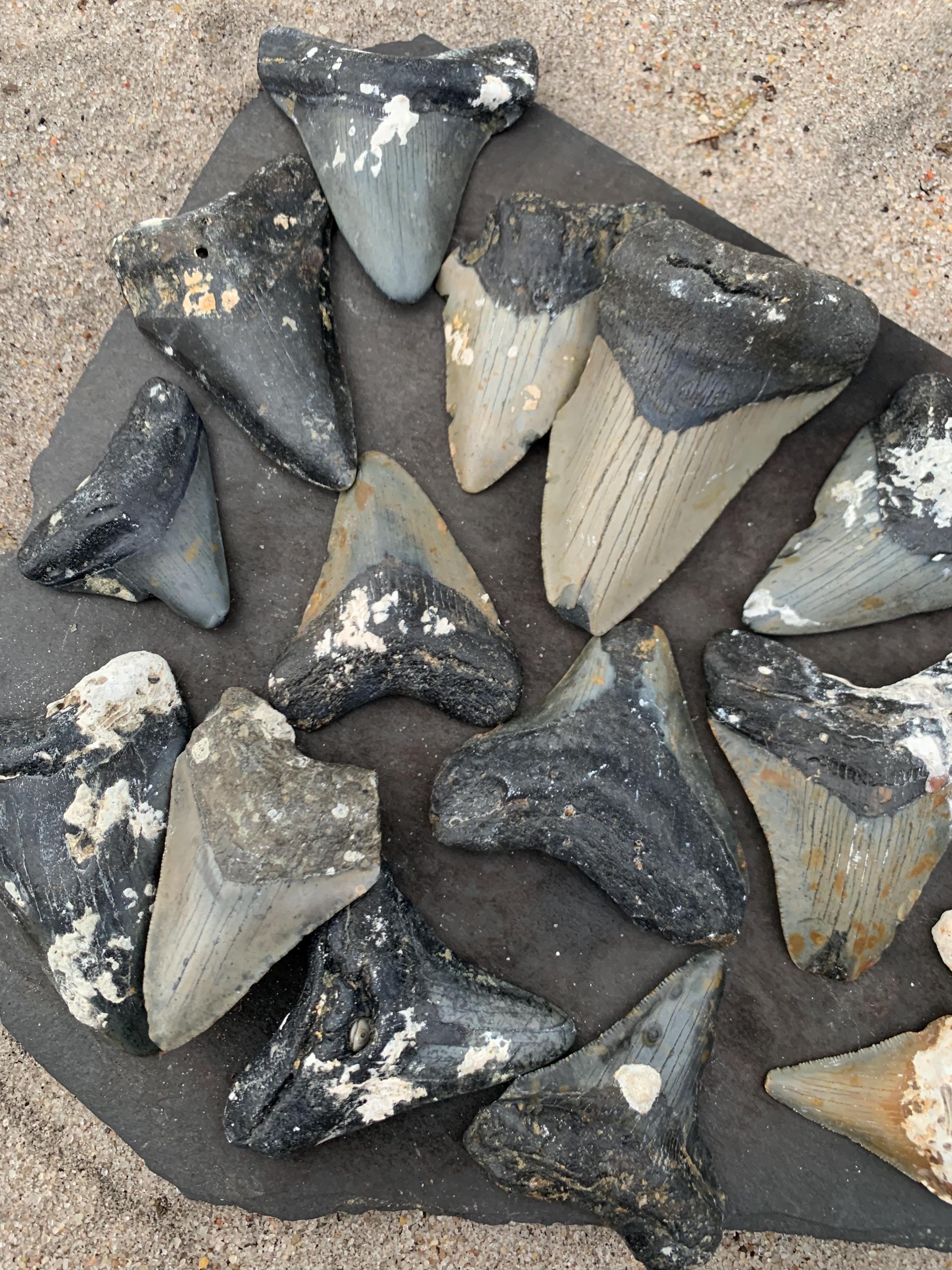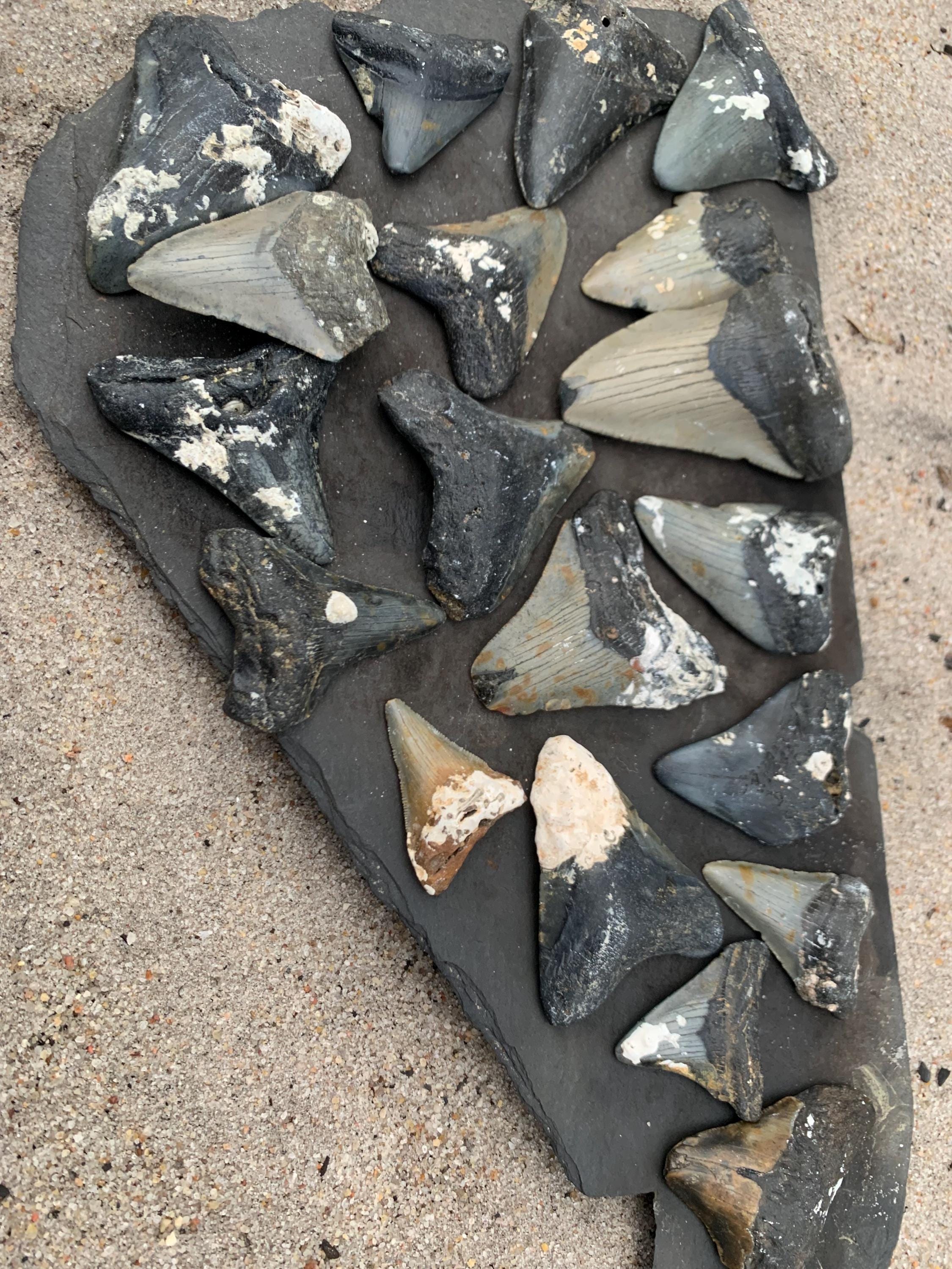 19 Megalodon Shark Teeth! Wholesale bundle fossilized shark teeth, Megalodon, Meg Teeth, Shark Teeth Fossils ranging from 1-3 inches