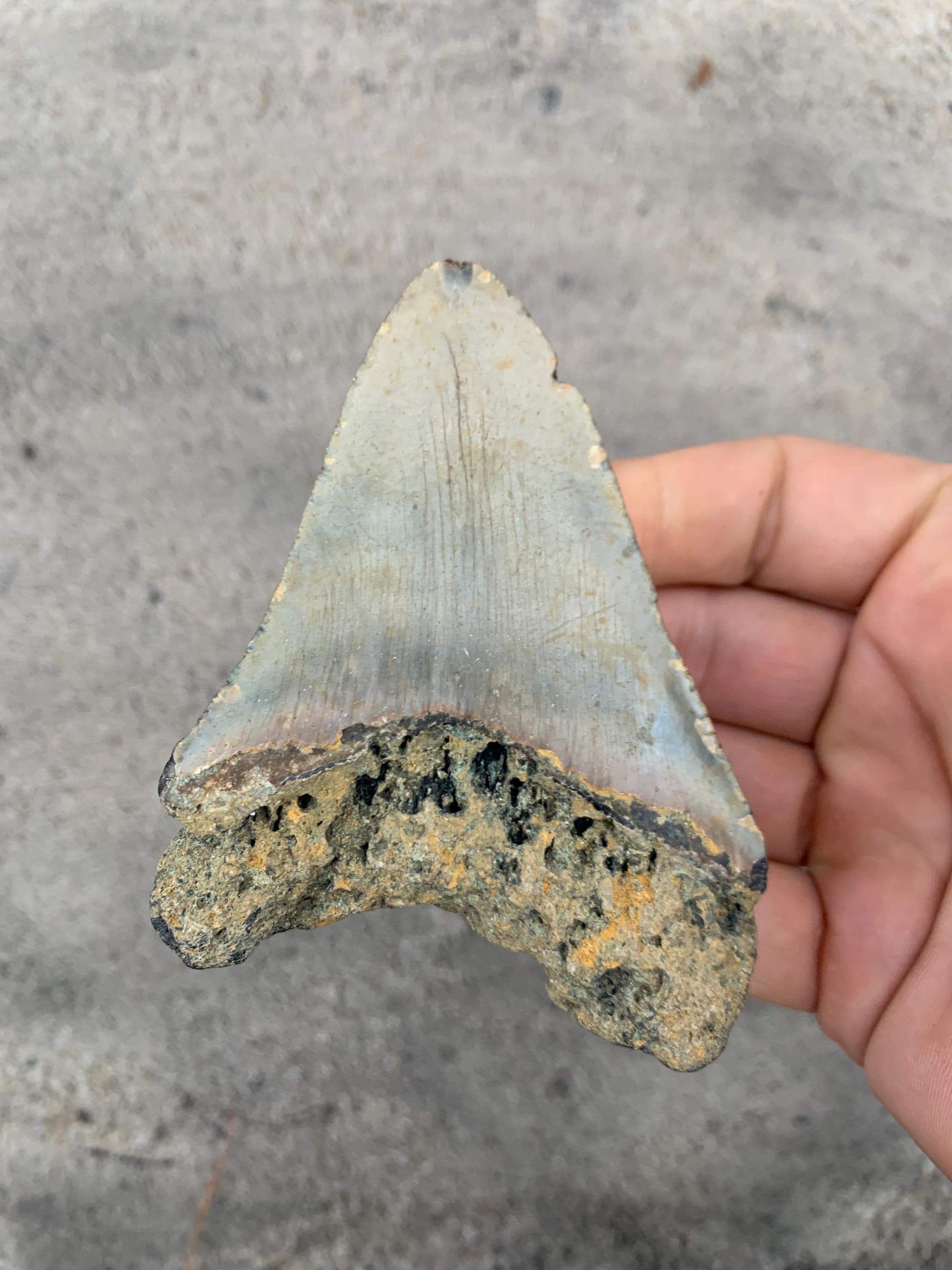 All of the shop's shark teeth are found by me diving in around 100 feet of water off of the North Carolina coast. The teeth are from the Miocene period and are between 18 - 2.5 million years old. All teeth are 100% original with no restoration or repair.