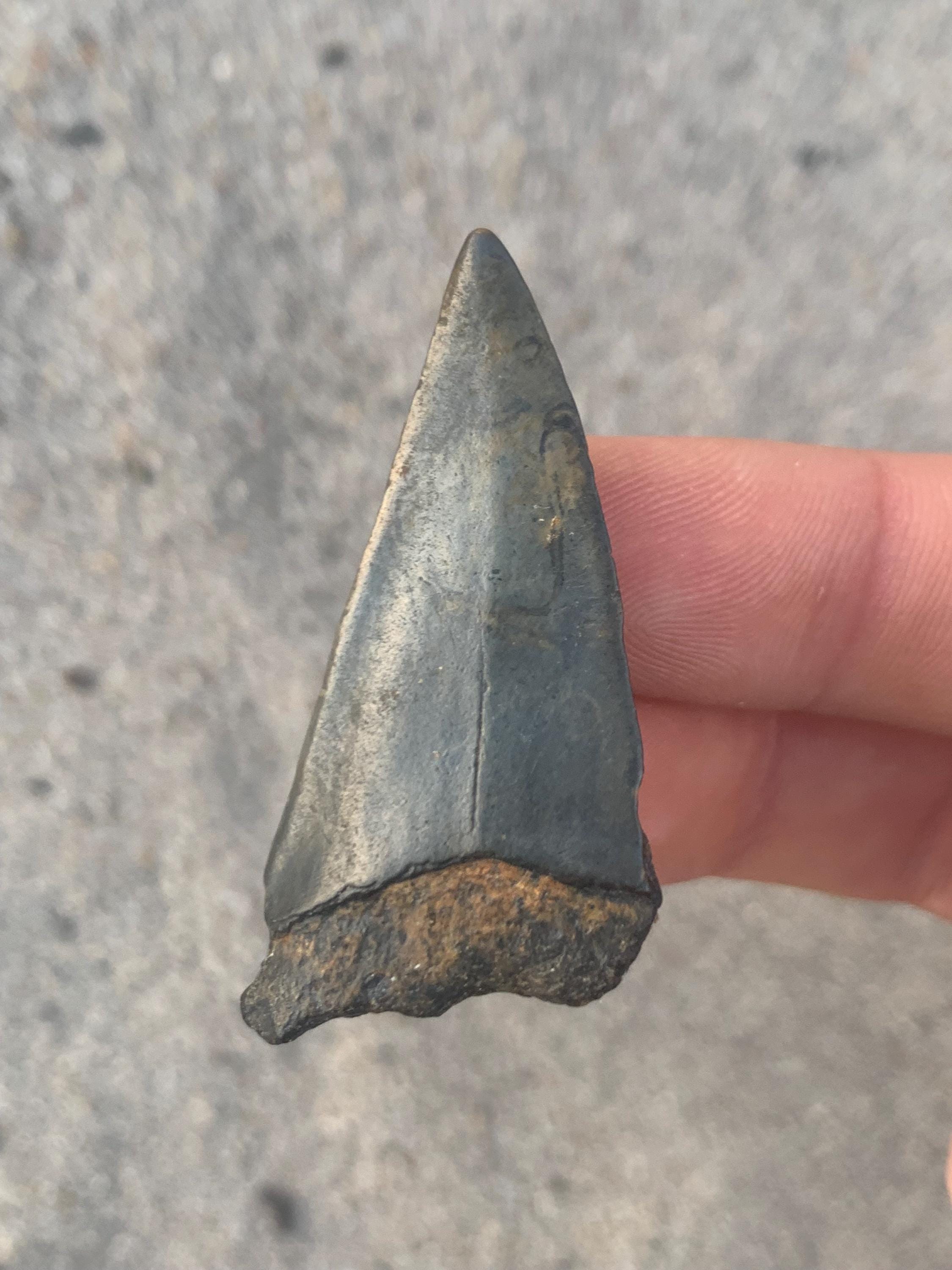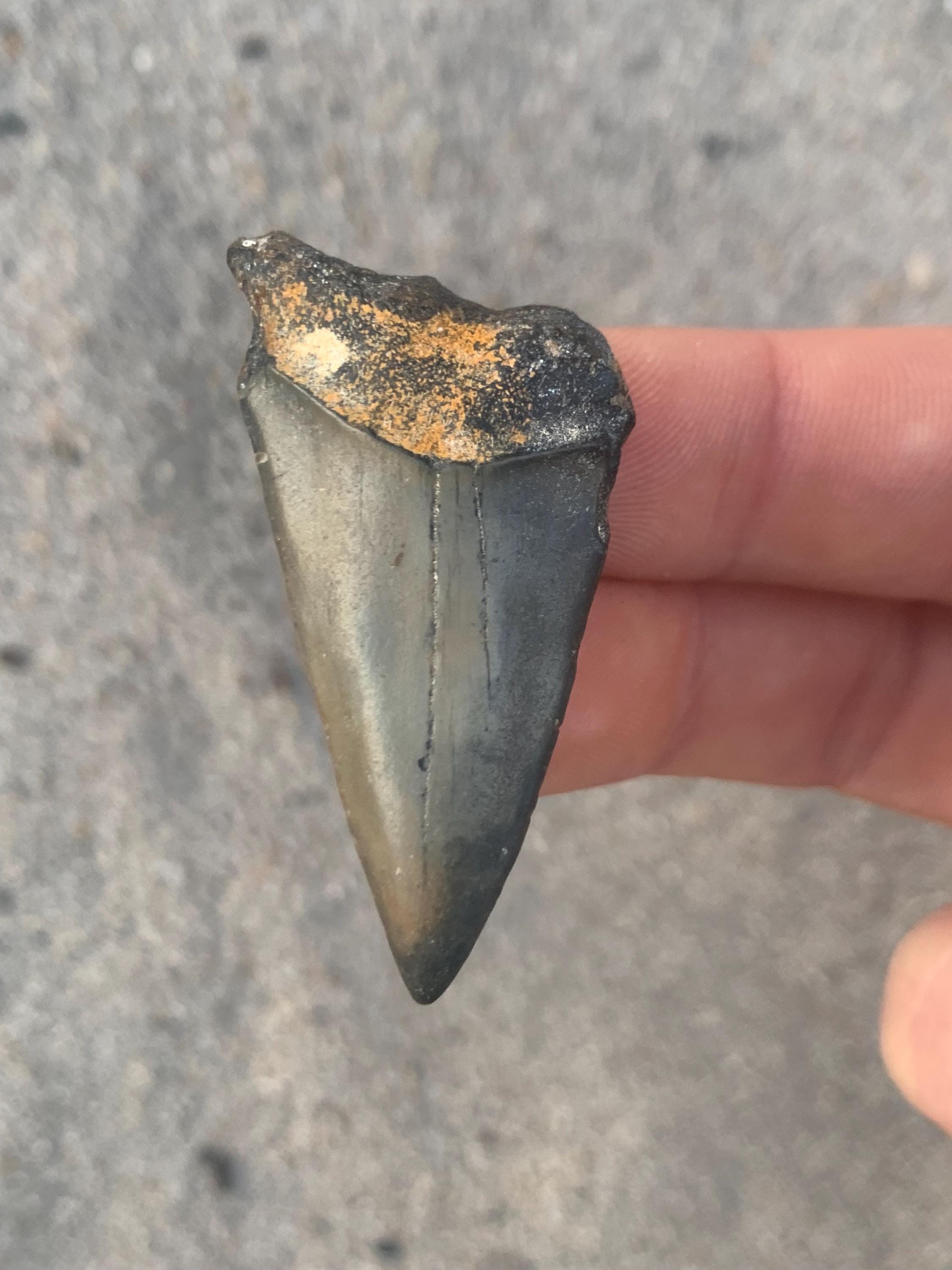 All of the shop's shark teeth are found by me diving in around 100 feet of water off of the North Carolina coast. The teeth are from the Miocene period and are between 18 - 2.5 million years old. All teeth are 100% original with no restoration or repair.