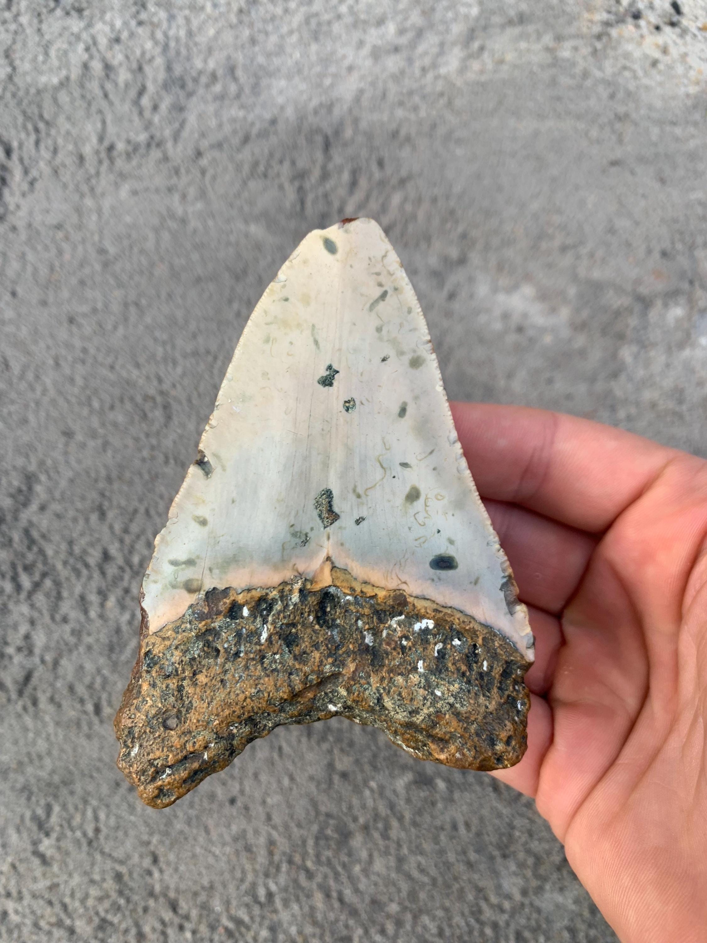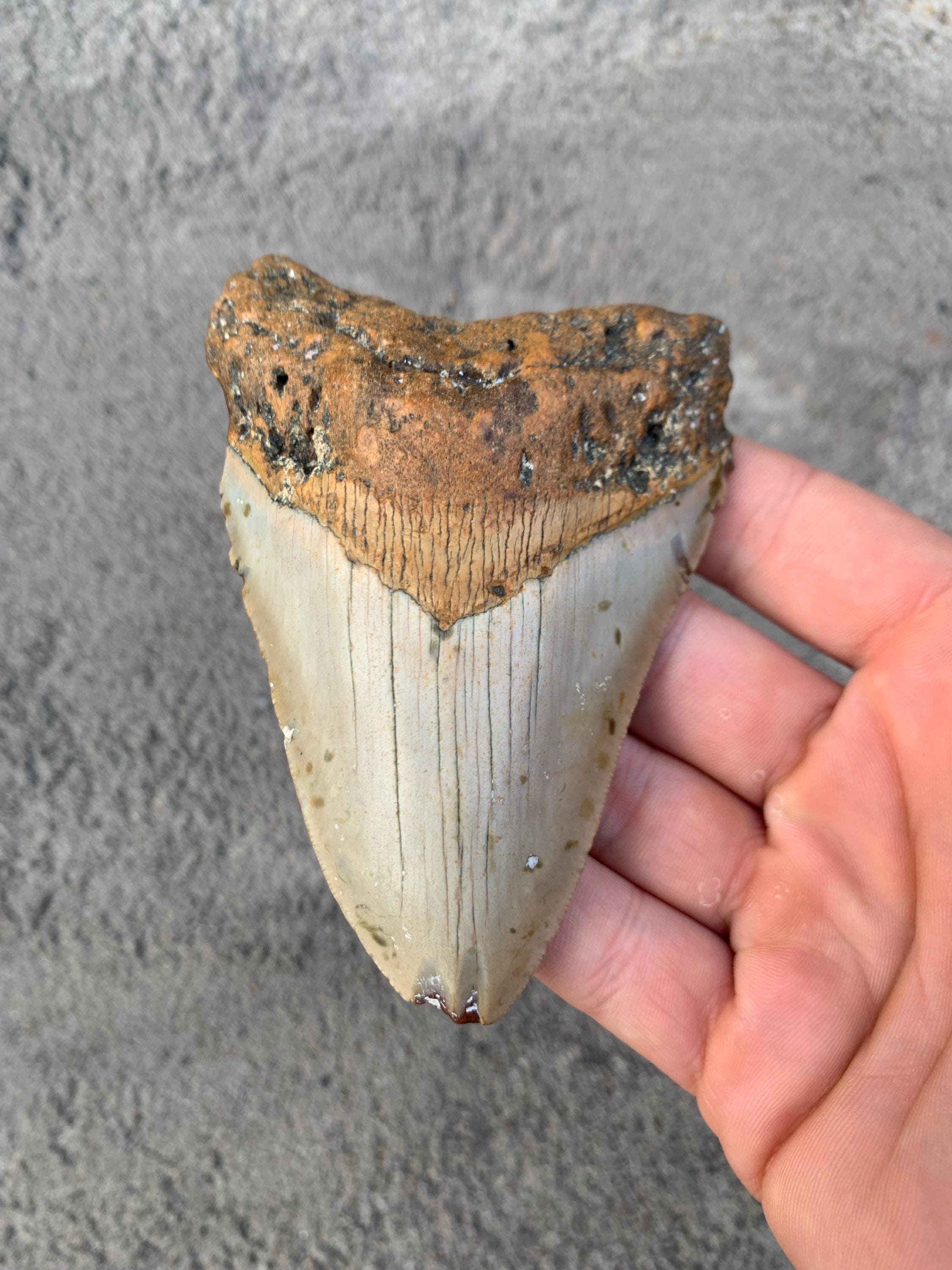 Megalodon Tooth - 4.4 inches - Real Otodus Megalodon, Authentic Shark Tooth Fossil, Huge Megalodon Tooth, Meg Teeth