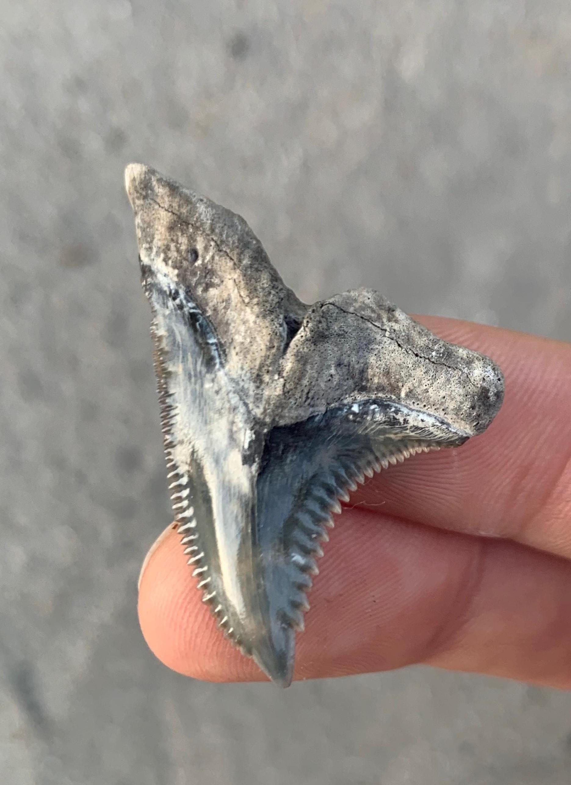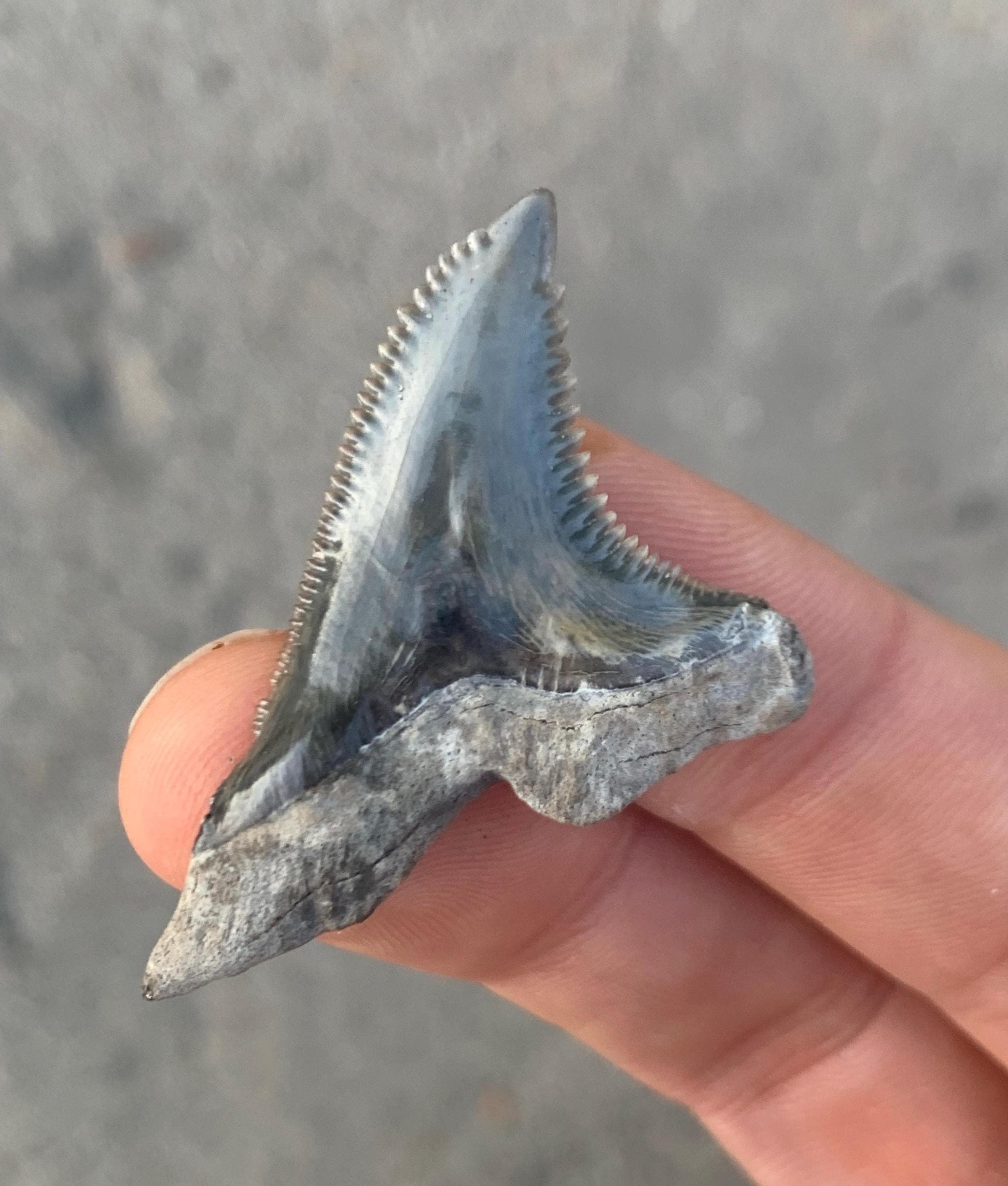 All of the shop's shark teeth are found by me diving in around 100 feet of water off of the North Carolina coast. The teeth are from the Miocene period and are between 18 - 2.5 million years old. All teeth are 100% original with no restoration or repair.