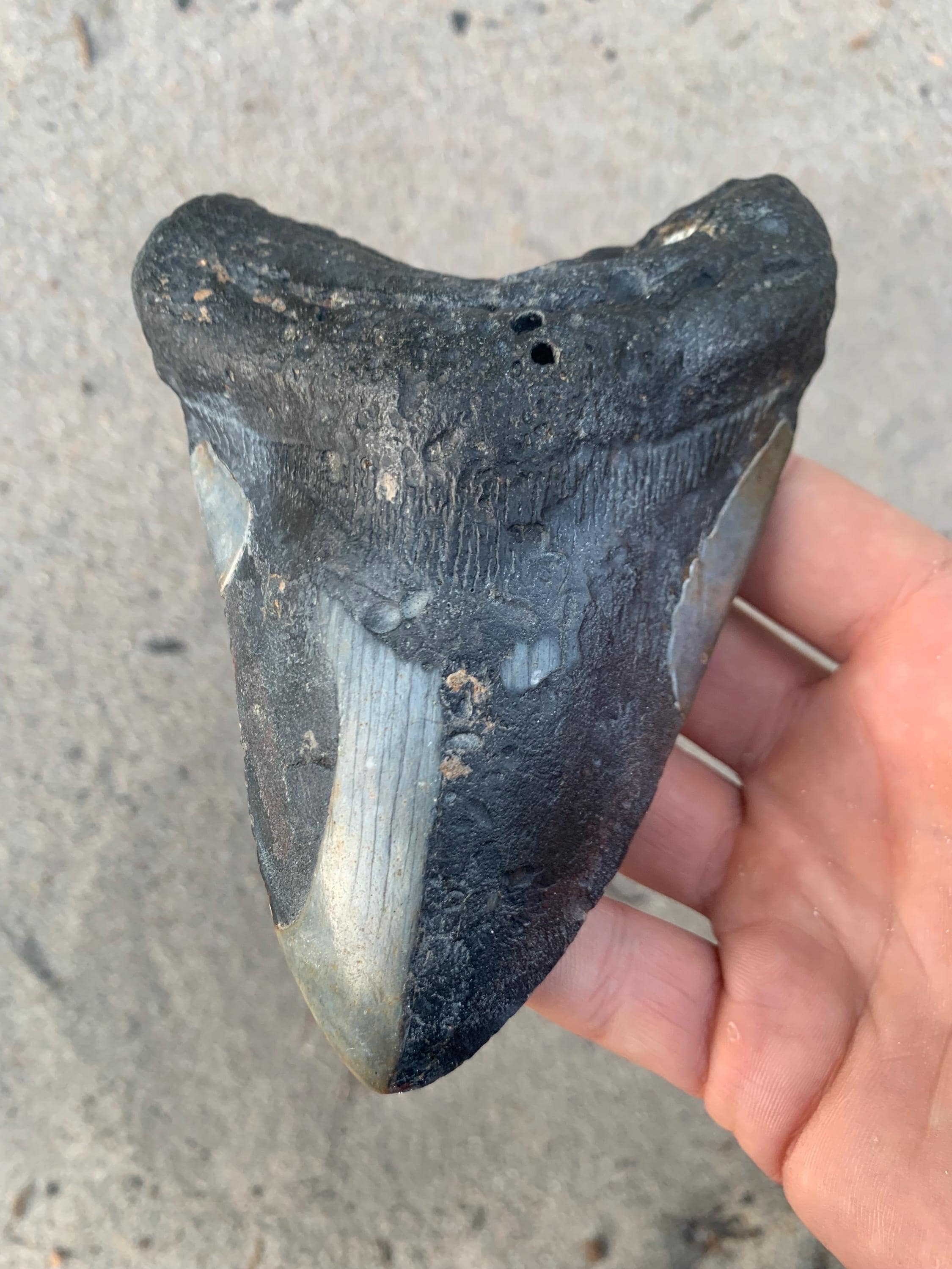 All of the shop's shark teeth are found by me diving in around 100 feet of water off of the North Carolina coast. The teeth are from the Miocene period and are between 18 - 2.5 million years old. All teeth are 100% original with no restoration or repair.