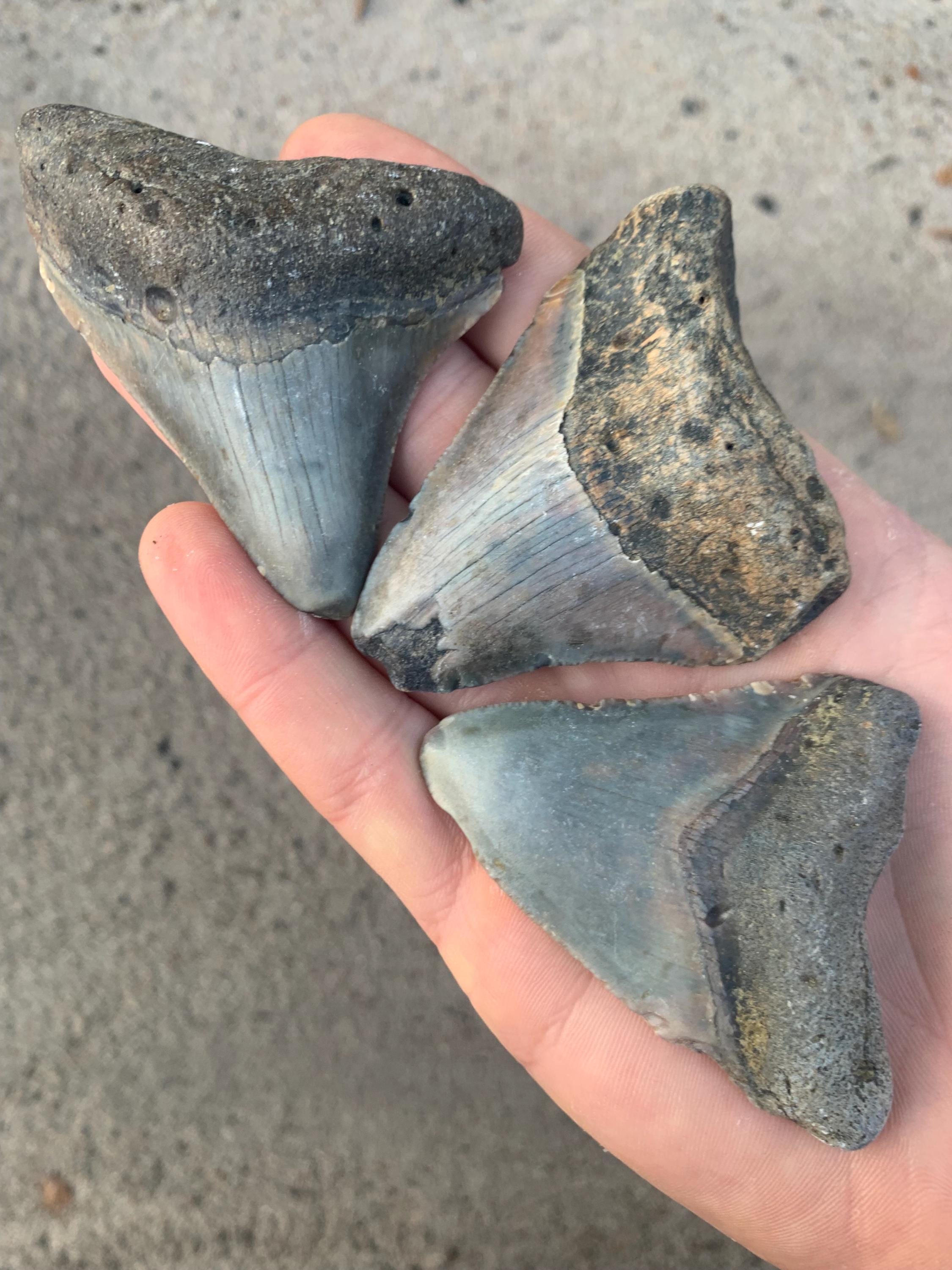 3 Megalodon Shark Teeth - Real Otodus Megalodon, Authentic Shark Tooth Fossil, Huge Megalodon Tooth, Meg Teeth