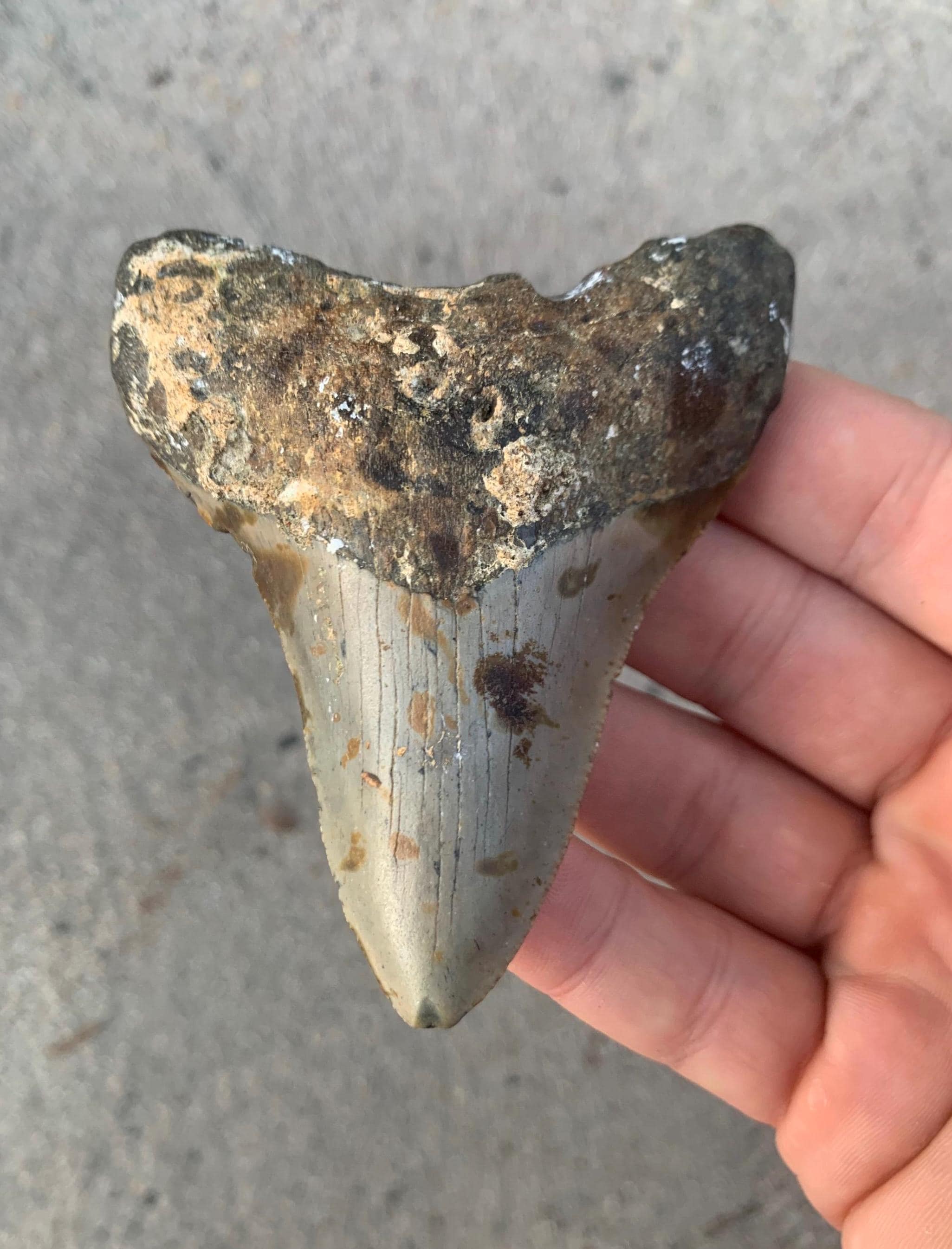 All of the shop's shark teeth are found by me diving in around 100 feet of water off of the North Carolina coast. The teeth are from the Miocene period and are between 18 - 2.5 million years old. All teeth are 100% original with no restoration or repair.