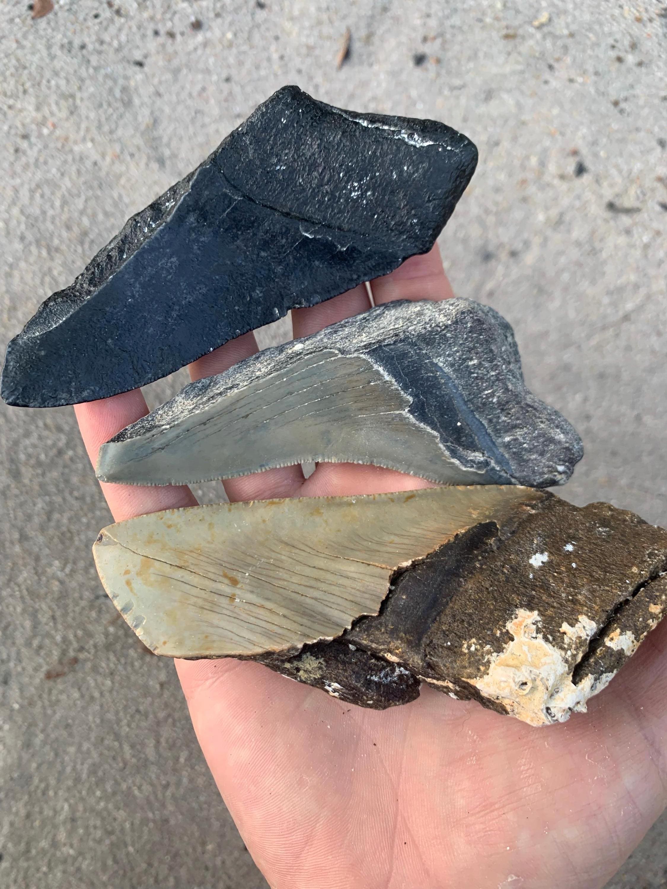 3 Large Broken Megalodon Shark Teeth - Real Otodus Megalodon, Authentic Shark Tooth Fossil, Huge Megalodon Tooth, Meg Teeth